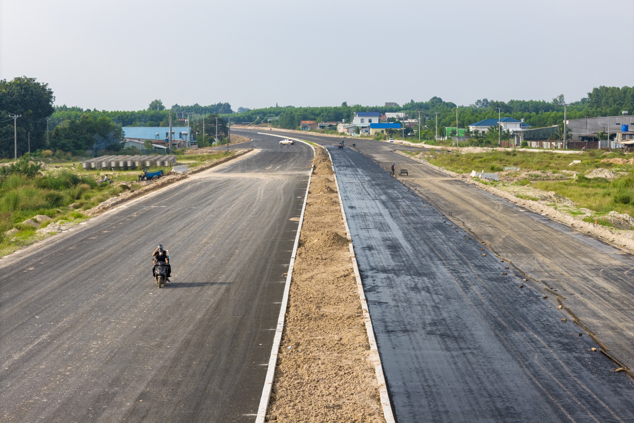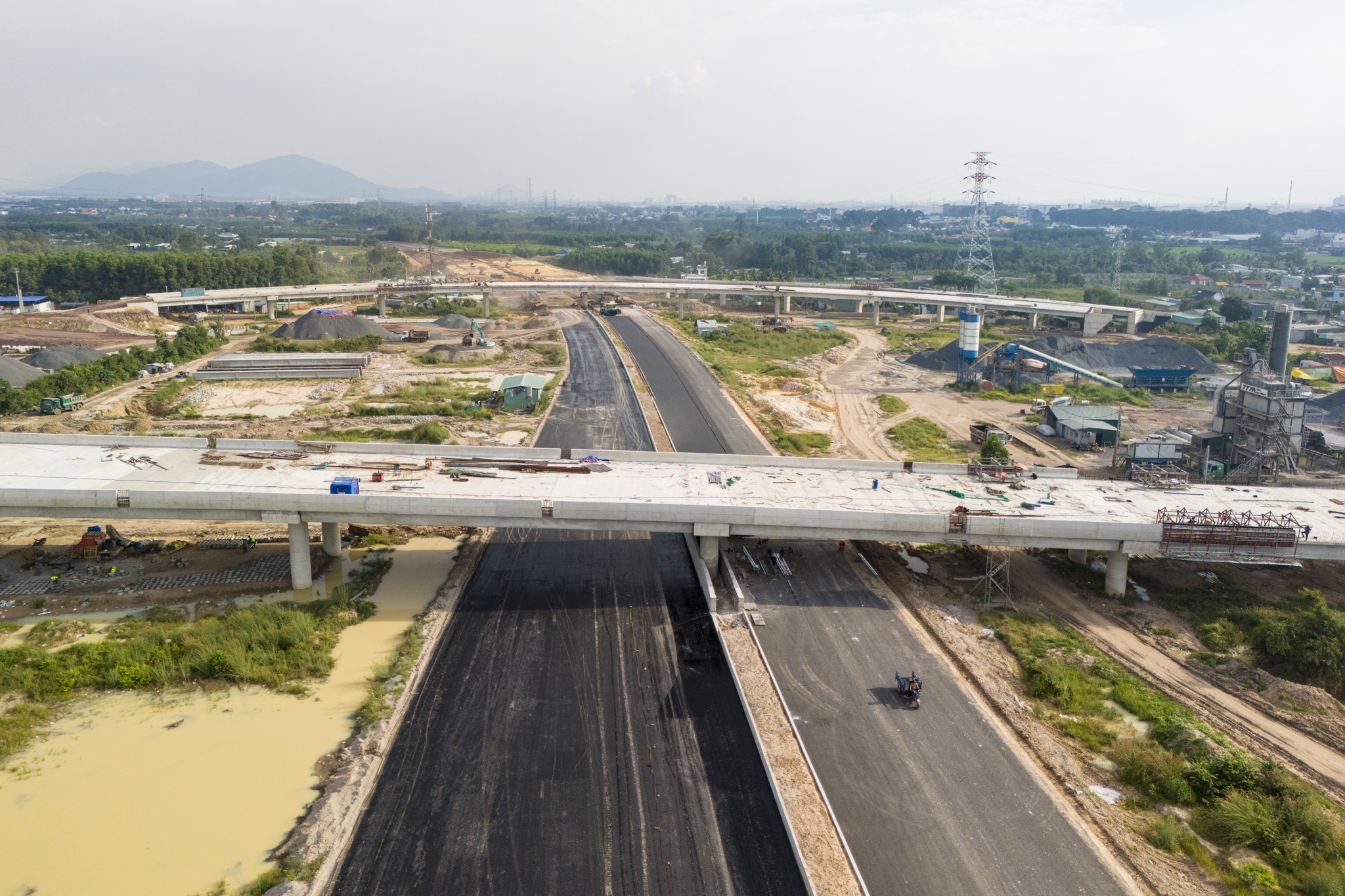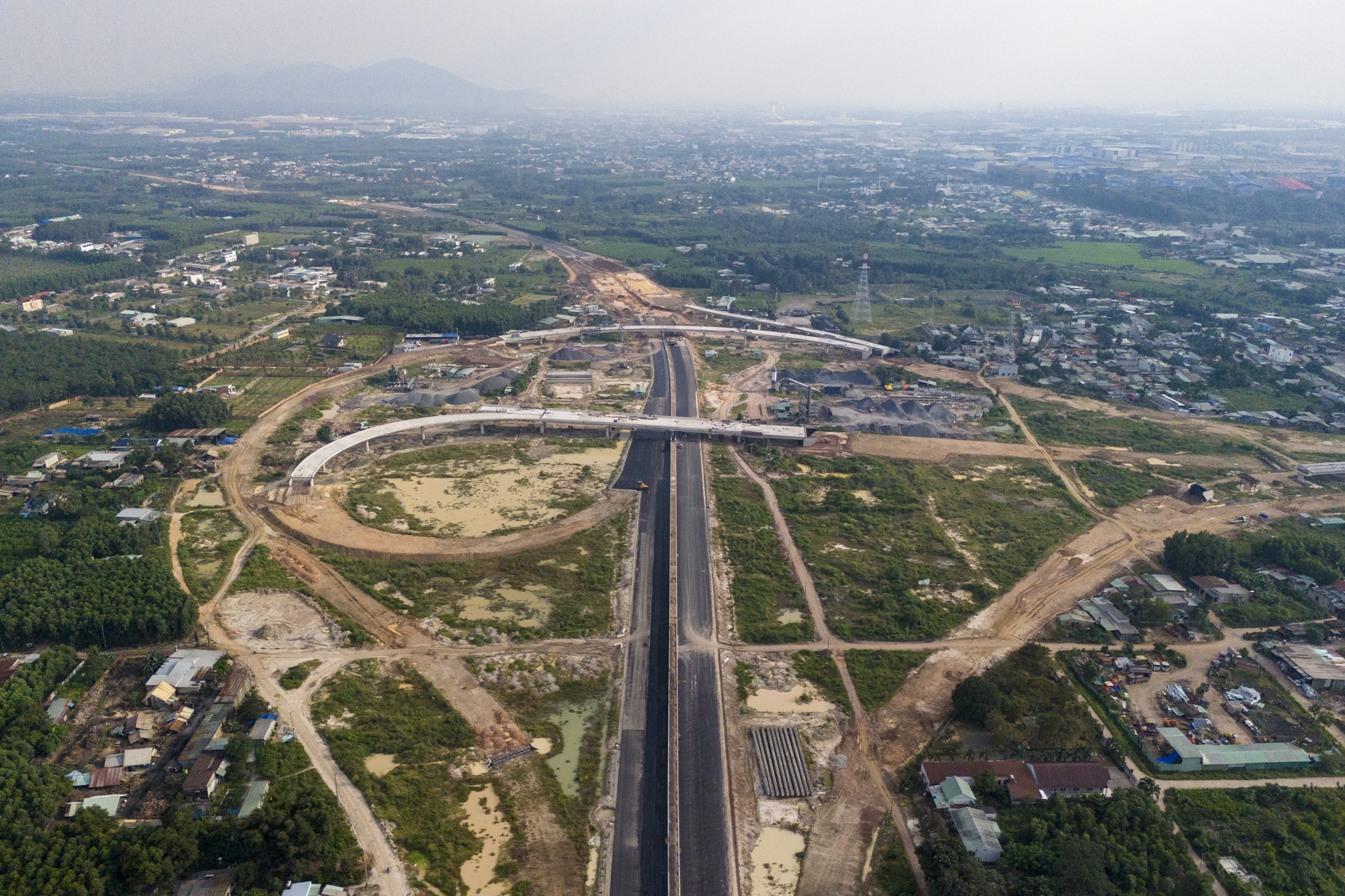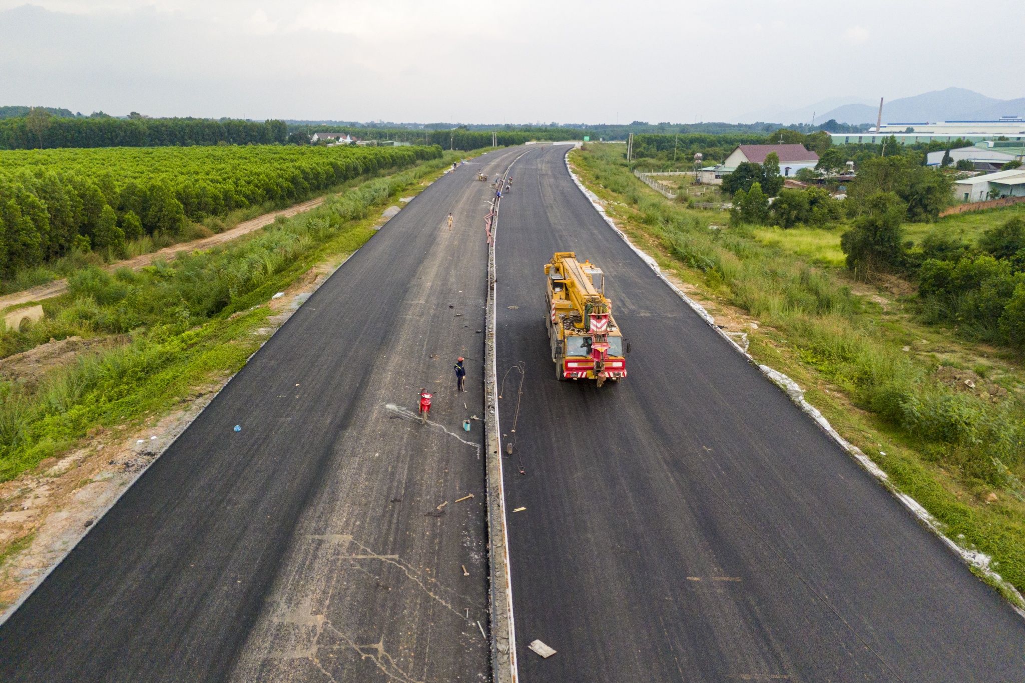 Cao tốc Biên Hòa - Vũng Tàu có tổng mức đầu tư 17.800 tỷ đồng, dài 53 km, đi qua địa bàn 2 tỉnh Đồng Nai và Bà Rịa - Vũng Tàu. Dự án được chia làm 3 phần: Đoạn qua địa bàn tỉnh Đồng Nai dài khoảng 34 km gồm dự án thành phần 1 và 2, đoạn còn lại qua địa bàn tỉnh Bà Rịa - Vũng Tàu dài 19,5 km là dự án thành phần 3. Trong ảnh là đoạn cao tốc qua xã Long Đức (cũ) do nhà thầu Lizen thi công đã hoàn thành thảm nhựa và vạch kẻ đường.