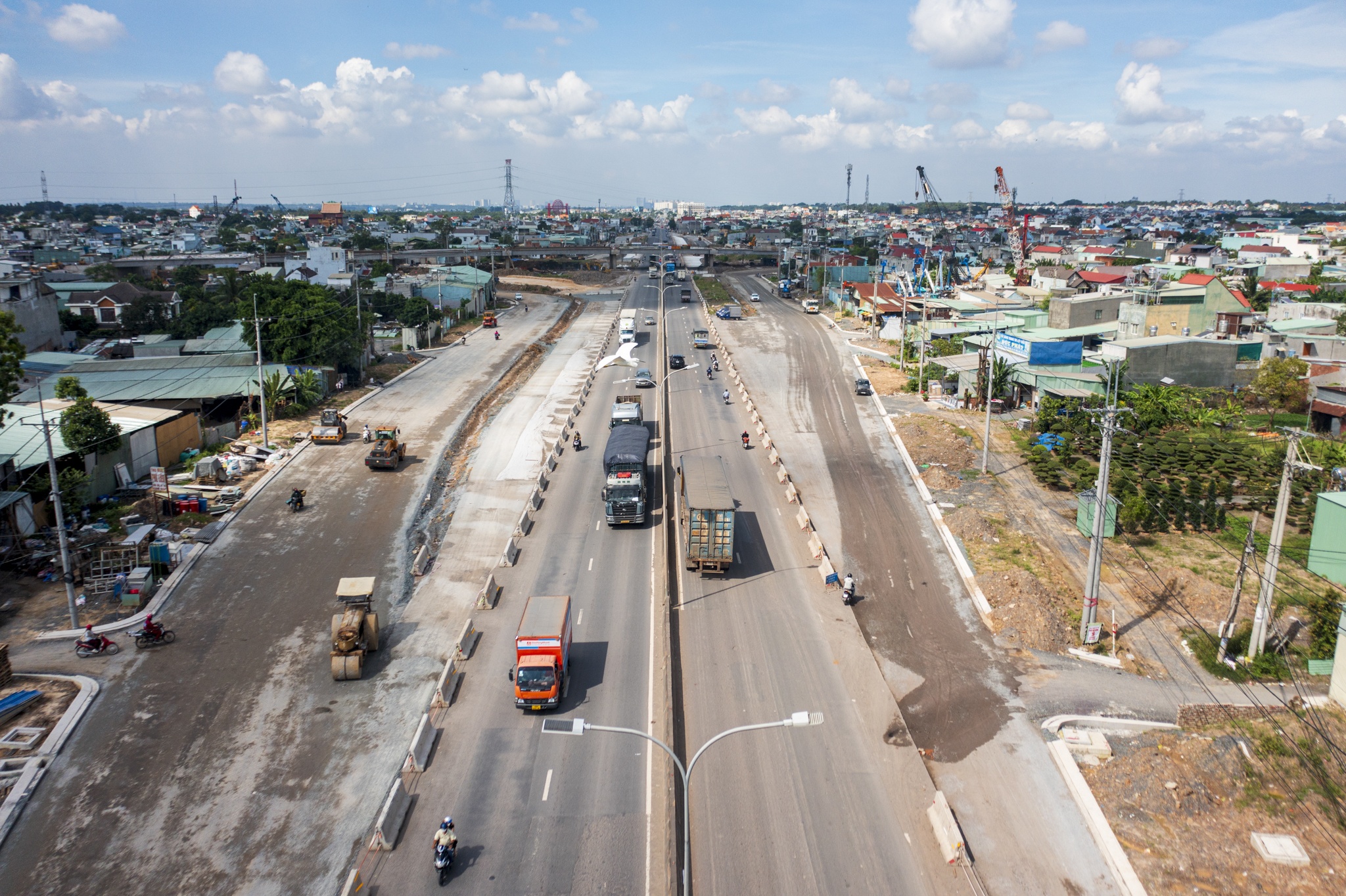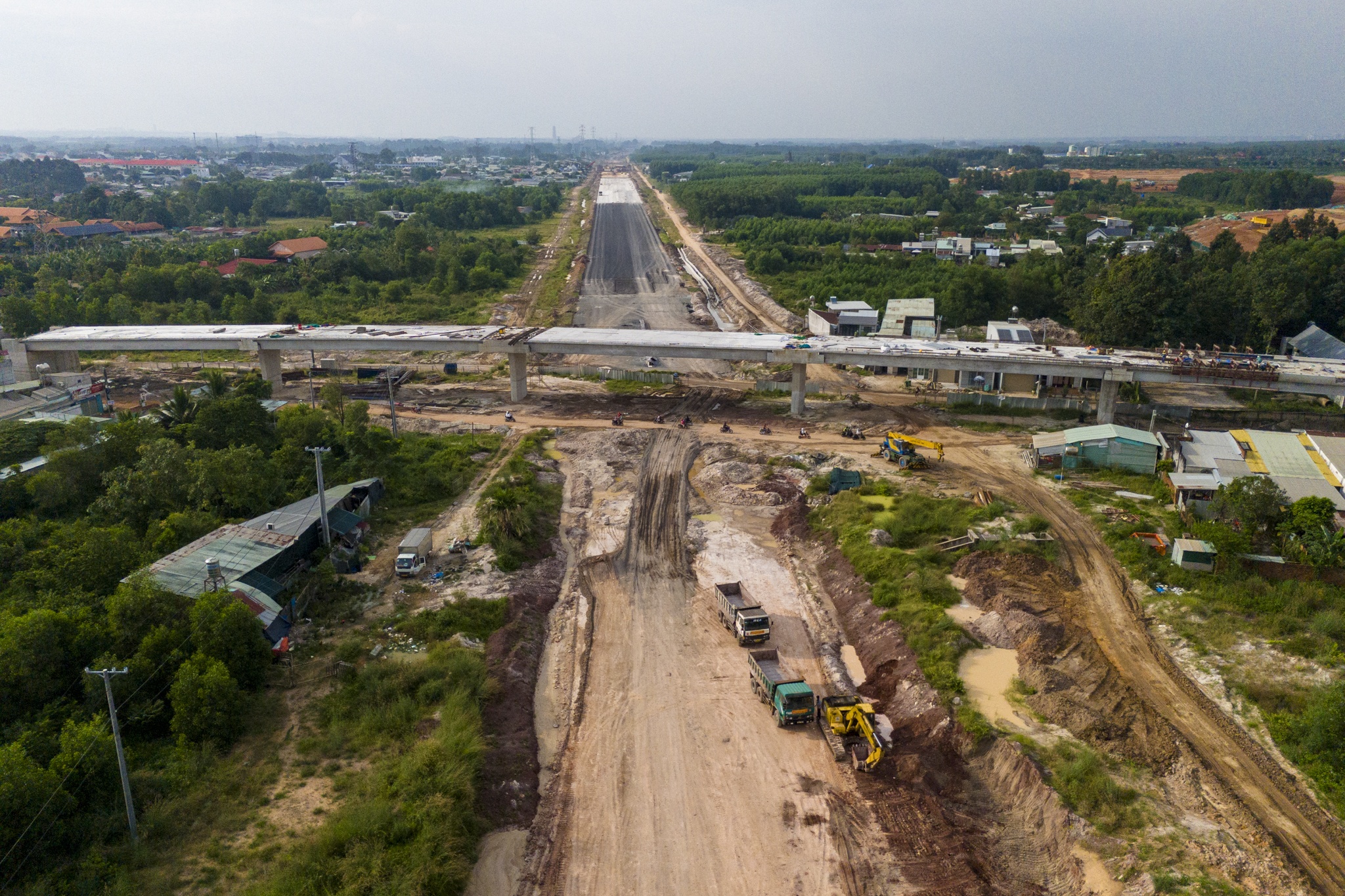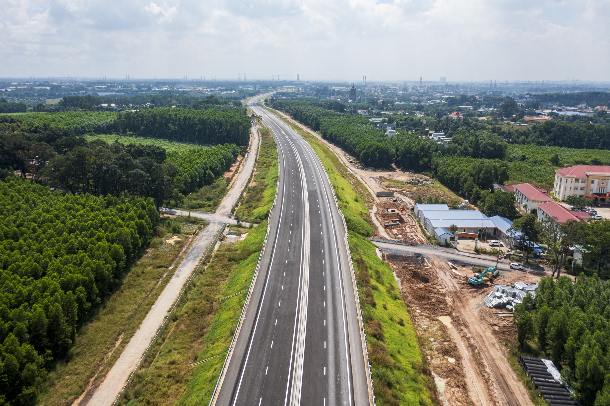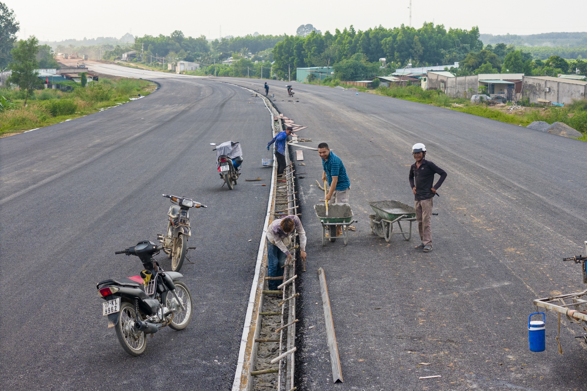 Cao tốc Biên Hòa - Vũng Tàu có tổng mức đầu tư 17.800 tỷ đồng, dài 53 km, đi qua địa bàn 2 tỉnh Đồng Nai và Bà Rịa - Vũng Tàu. Dự án được chia làm 3 phần: Đoạn qua địa bàn tỉnh Đồng Nai dài khoảng 34 km gồm dự án thành phần 1 và 2, đoạn còn lại qua địa bàn tỉnh Bà Rịa - Vũng Tàu dài 19,5 km là dự án thành phần 3. Trong ảnh là đoạn cao tốc qua xã Long Đức (cũ) do nhà thầu Lizen thi công đã hoàn thành thảm nhựa và vạch kẻ đường.