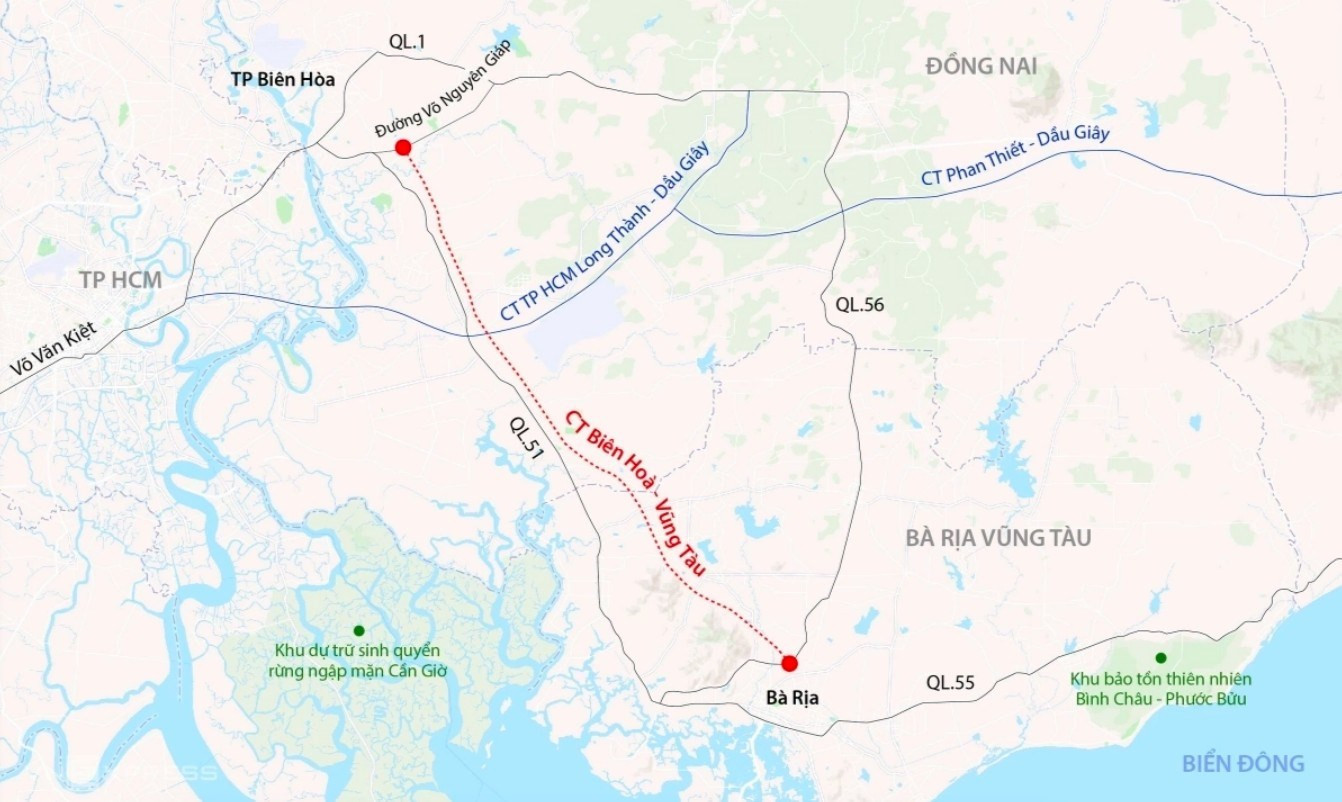 Dự án cao tốc Biên Hòa - Vũng Tàu có tổng chiều dài gần 54 km với tổng mức đầu tư khoảng 17.800 tỷ đồng, được chia thành ba dự án thành phần. Theo phương án mới nhất, việc thông xe sẽ được thực hiện tại dự án thành phần 2 và 3 với tổng chiều dài hơn 38 km, đi qua địa bàn Đồng Nai và TP.HCM. Riêng dự án thành phần 1 dài 16 km do Đồng Nai làm chủ đầu tư hiện vẫn chưa hoàn thành.