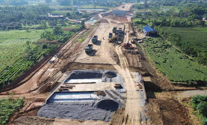 Cụ thể, Gói thầu 21 đang đạt 51% giá trị hợp đồng, trong đó đắp hoàn thiện nền đường được 7,79/12km đạt 65%; rải cấp phối đá dăm lớp dưới được 5/12km, đạt 42%; rải cấp phối đá dăm gia cố xi măng được 2,92/12km, đạt 24%; thảm bêtông nhựa 1,45/12km, đạt 12%.