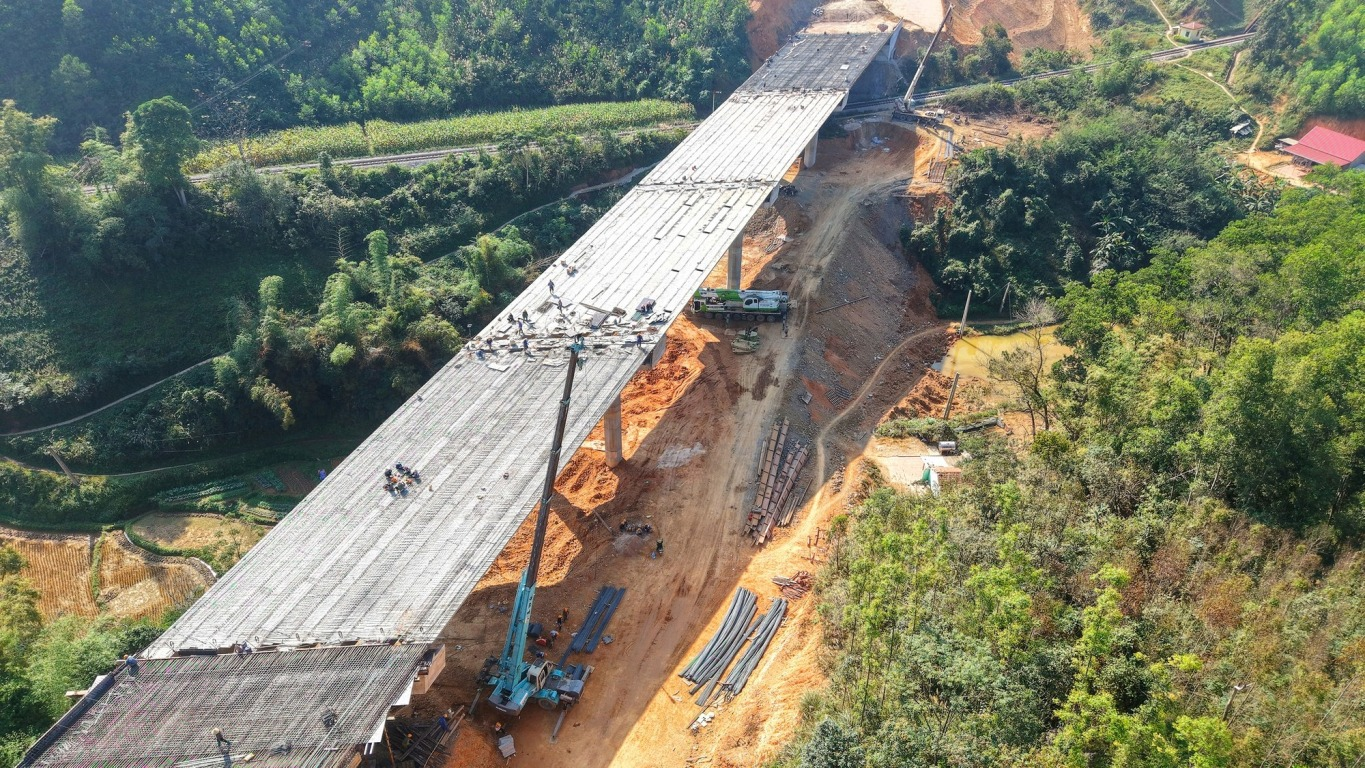 Trên phạm vi 59,2km chiều dài tuyến, không khí thi công những ngày này tiếp tục diễn ra khẩn trương, nhịp độ làm việc được đẩy lên mức cao nhất. Sau giai đoạn “bão chồng bão, lũ chồng lũ”, các nhà thầu hiện huy động hơn 2.800 nhân sự, 1.230 thiết bị, triển khai 148 mũi thi công. Giá trị thực hiện đến nay đạt 3.942/4.572 tỷ đồng, tương đương hơn 86% sản lượng yêu cầu thông tuyến.