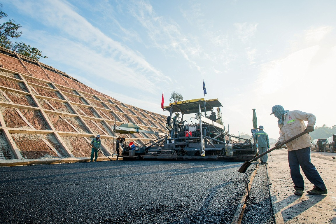 Tại phân đoạn Km22+100 đến Km22+400 (phường Đông Kinh, tỉnh Lạng Sơn), công tác trải thảm bê tông nhựa cũng đang được lực lượng thi công tăng tốc. Riêng dây chuyền thảm nhựa tại phân đoạn này hiện huy động 15 thiết bị và 30 nhân công, làm việc từ 7 giờ đến 20 giờ mỗi ngày. Trong điều kiện thời tiết thuận lợi, nhà thầu thi công huy động xe chở bê tông nhựa từ trạm trộn cùng dây chuyền thảm hiện đại và nhiều thiết bị lu lèn, tiến hành thảm bê tông nhựa mặt đường.