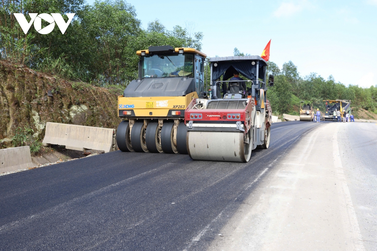Trong dịp Tết Dương lịch, đơn vị tiếp tục tăng tốc thảm nhựa các đoạn còn lại, phấn đấu hoàn thành toàn bộ phần thảm trước Tết Nguyên đán 2026.