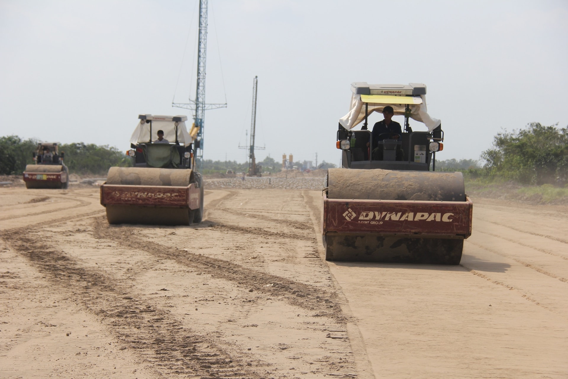 Đơn vị thi công tiến hành thi công nền đường. Ảnh: Báo Xây Dựng