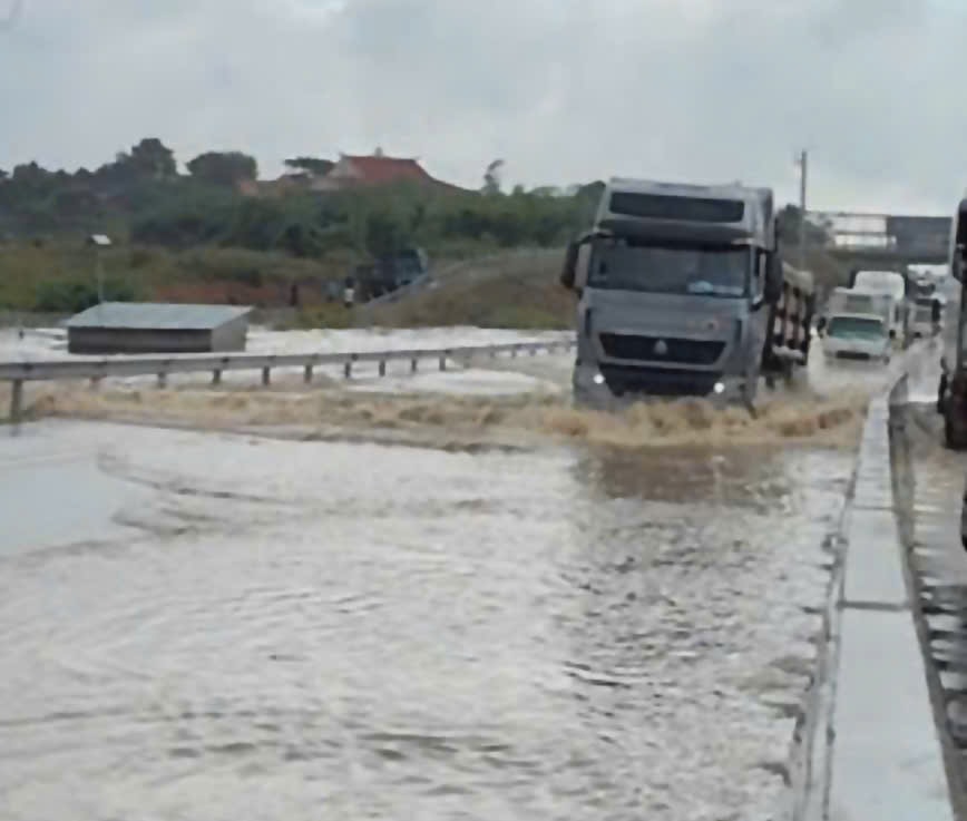 Tại vị trí này, nước dâng ngập hơn nửa bánh xe ở cả hai chiều, khiến mặt đường mất an toàn và không bảo đảm điều kiện cho các phương tiện lưu thông tốc độ cao trên cao tốc.