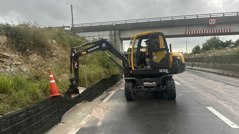 Tương tự, mưa lớn cũng làm cao tốc Vĩnh Hảo-Phan Thiết bị sạt lở cát đoạn Km215 (xã Hàm Liêm). Ngay sau đó, Ban Điều hành Dự án cao tốc Vĩnh Hảo-Phan Thiết đã cho đơn vị thi công xuống khắc phục sự cố nhằm bảo đảm an toàn giao thông.