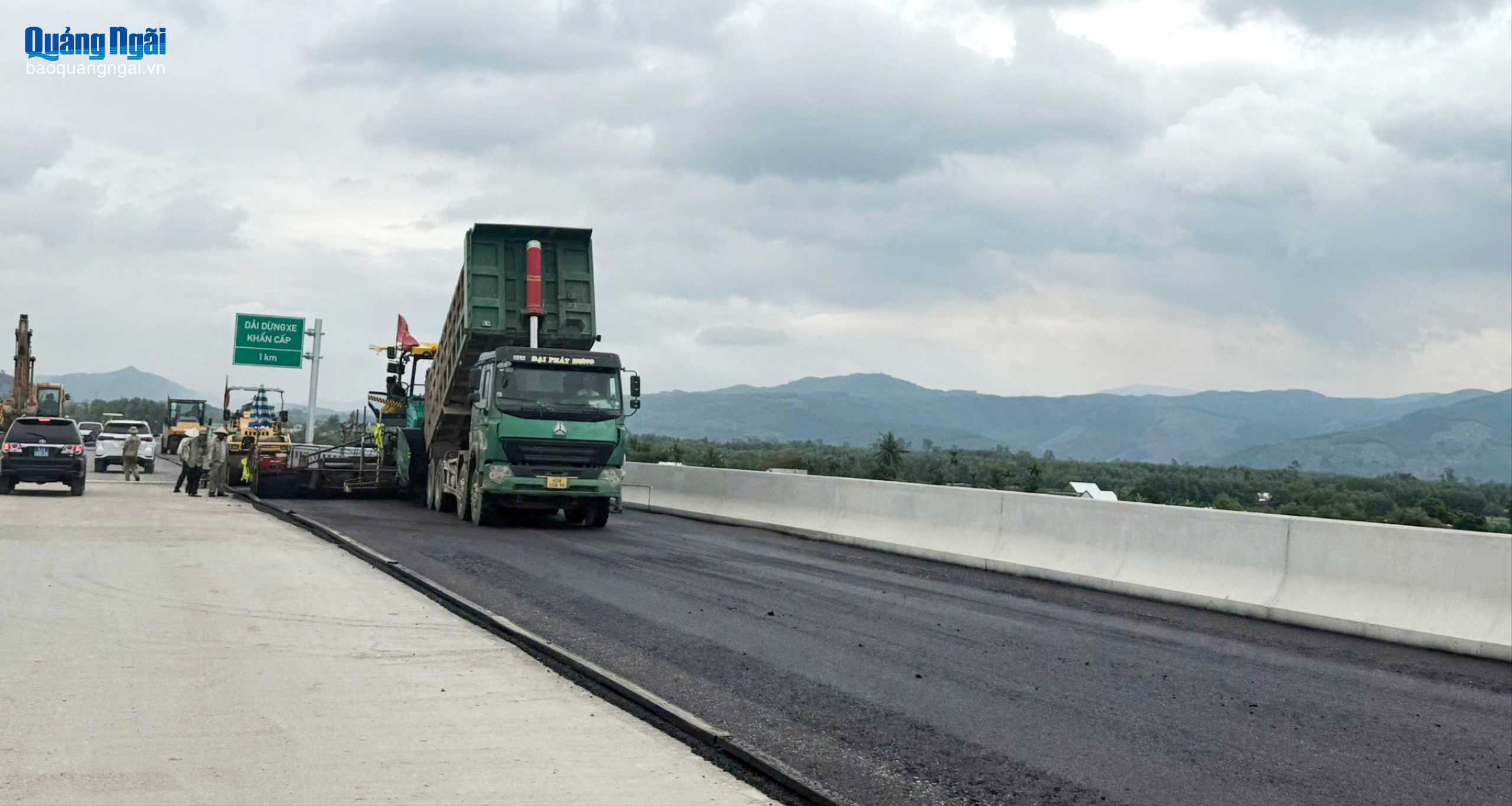 Tập trung thi công mặt đường Cao tốc Quảng Ngãi - Hoài Nhơn đoạn qua xã Nguyễn Nghiêm.