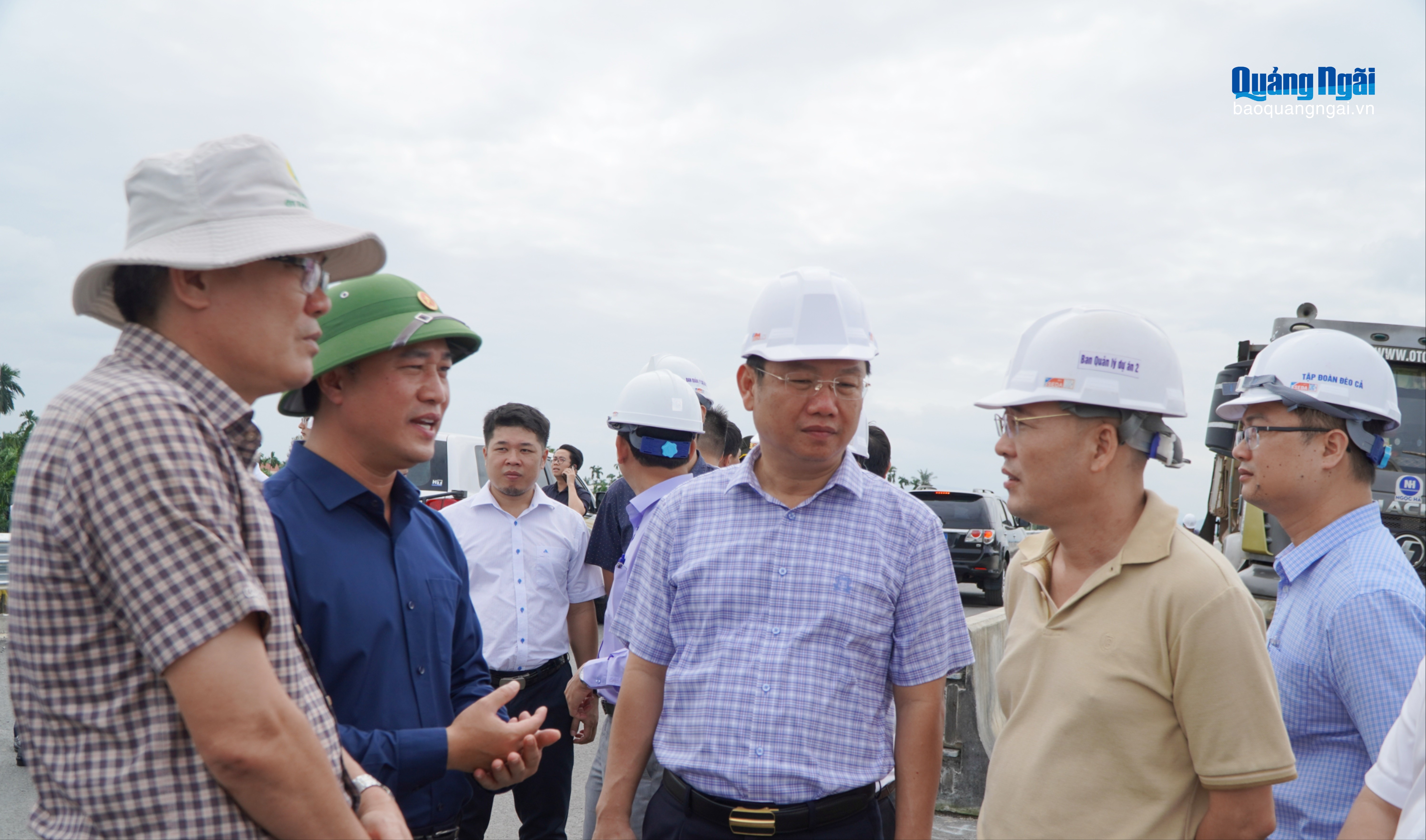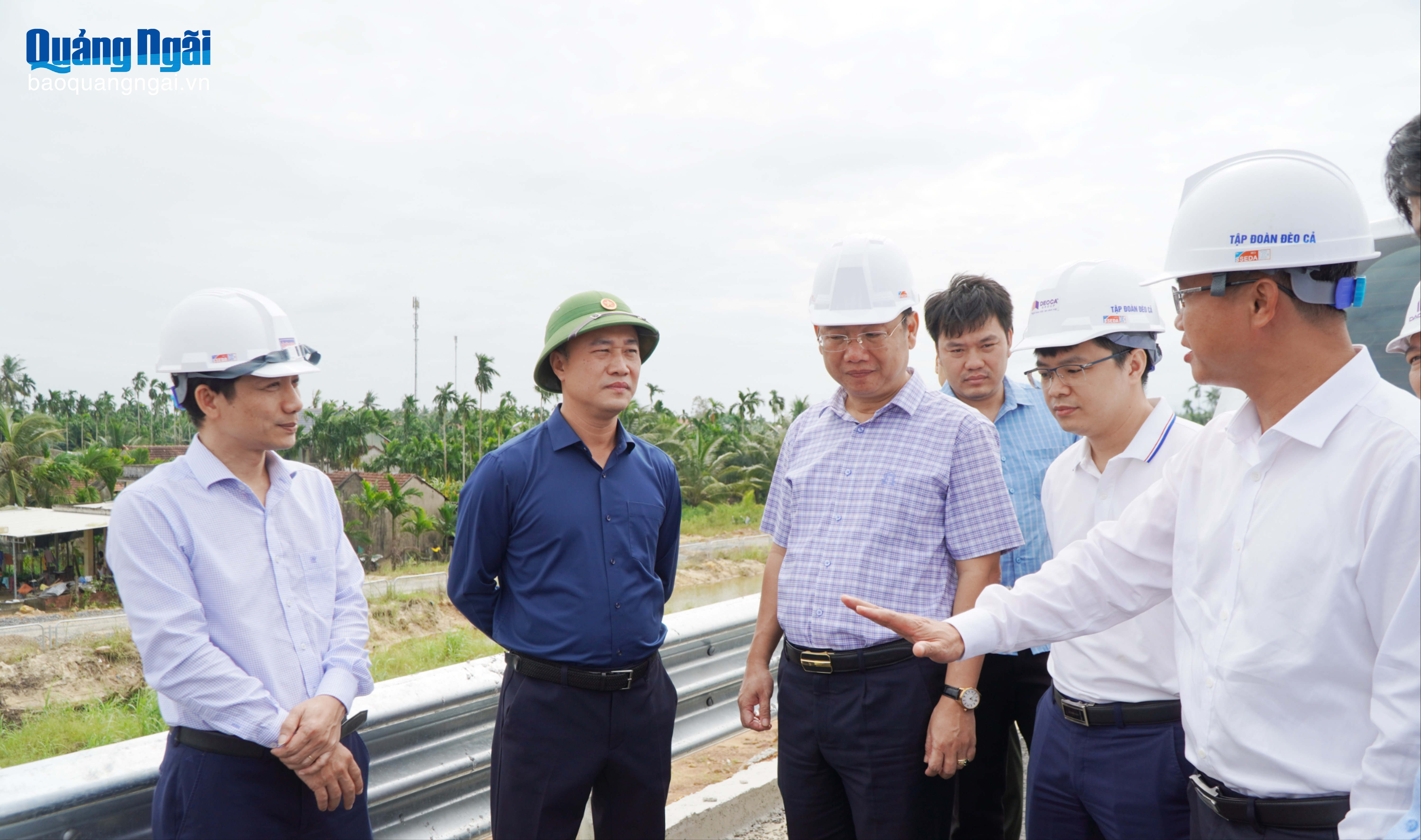 Kiểm tra tại hiện trường, Thứ trưởng Bộ Xây dựng Nguyễn Việt Hùng ghi nhận sự vào cuộc rất quyết liệt của chính quyền tỉnh Quảng Ngãi trong tháo gỡ các vướng mắc của dự án về mặt bằng và vật liệu thi công, góp phần quan trọng thúc đẩy tiến độ dự án.