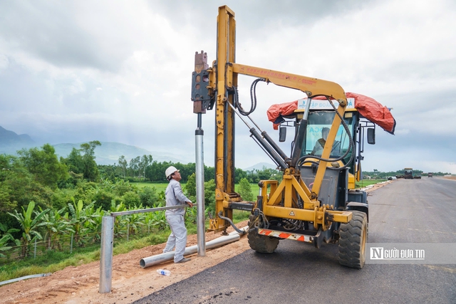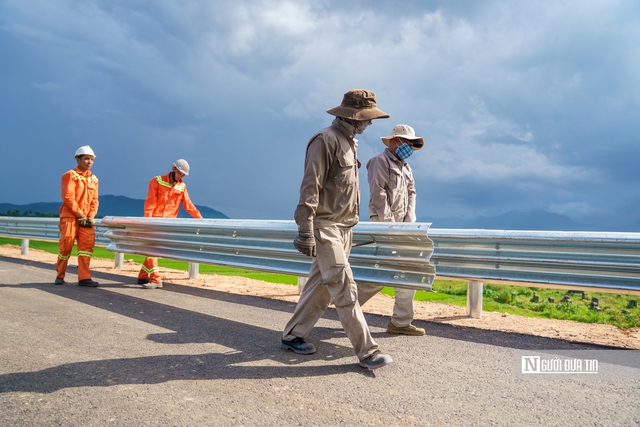 Giám đốc gói thầu XL02 Trần Đại Xuân cho biết: “Hiện còn khoảng 5 km chưa thảm nhựa do mưa, nhưng ngay khi thời tiết thuận lợi, chúng tôi sẽ hoàn thành. Hạ tầng an toàn giao thông cơ bản xong, riêng sơn kẻ đường còn 10%, sẽ hoàn tất trong vài ngày tới”.