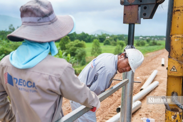 Ghi nhận của PV Người Đưa Tin, tại gói XL2 cao tốc Quảng Ngãi-Hoài Nhơn, gần 600 người đang hoàn tất các hạng mục hoàn thiện tuyến chính, mặt đường bê tông nhựa, hệ thống an toàn giao thông, sơn kẻ vạch đường.