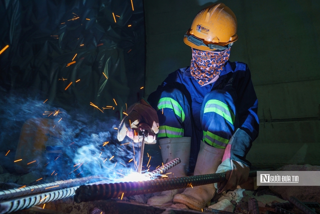 Kỹ sư, công nhân cùng thi công theo 3 ca 4 kíp, làm việc liên tục ngày đêm.