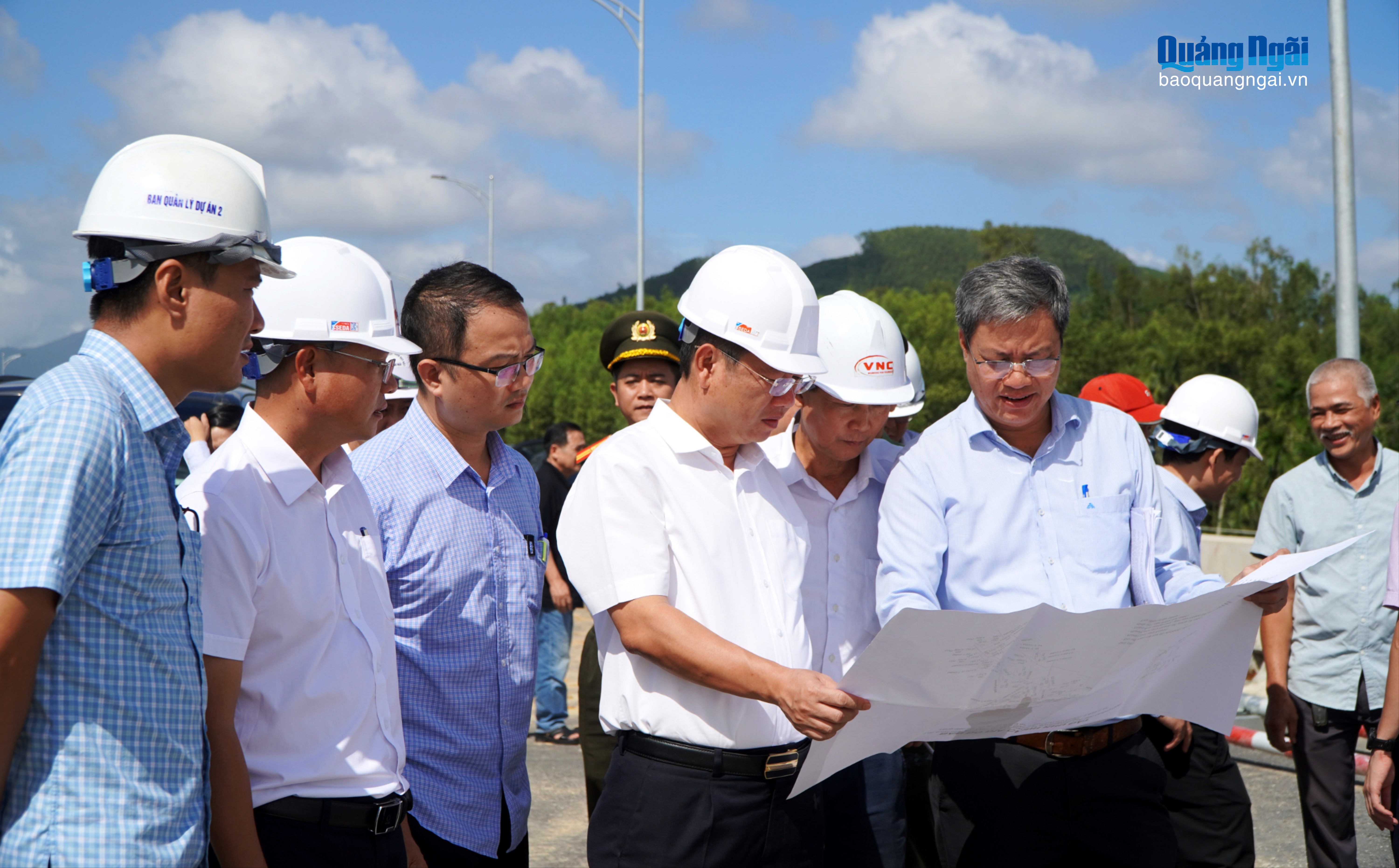 Phó Chủ tịch UBND tỉnh Nguyễn Công Hoàng kiểm tra điểm đầu tuyến cao tốc Quảng Ngãi - Hoài Nhơn thuộc địa bàn xã Nghĩa Giang.