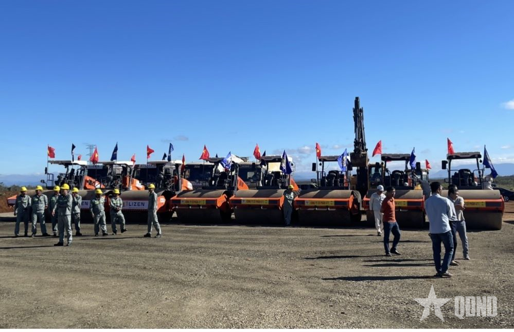 Tập trung máy móc, phương tiện phục vụ thi công cao tốc Quy Nhơn - Pleiku.