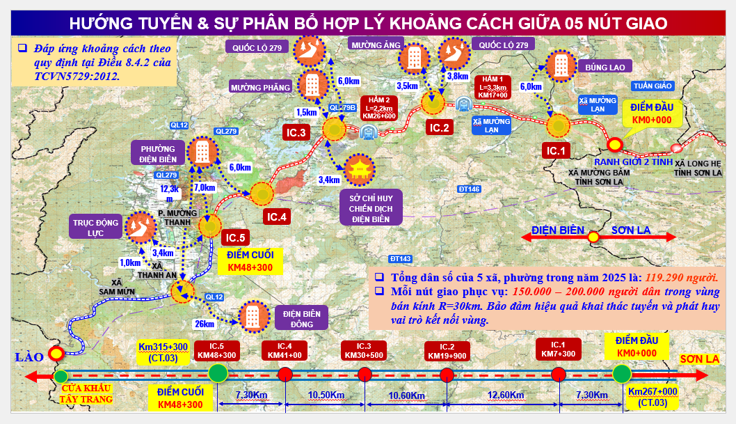Theo ông Hiếu, việc bố trí các nút giao được nghiên cứu, tính toán kỹ lưỡng nhằm bảo đảm hiệu quả khai thác cao nhất, tăng cường tính kết nối liên vùng và đáp ứng yêu cầu phục vụ phát triển kinh tế - xã hội. Các vị trí nút giao tại khu vực Mường Phăng, Mường Ảng và Búng Lao được lựa chọn trên cơ sở vai trò là các trung tâm kinh tế, du lịch hoặc các điểm kết nối giao thông quan trọng trong khu vực.