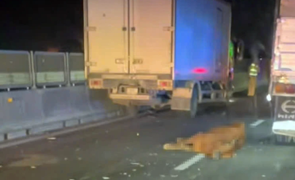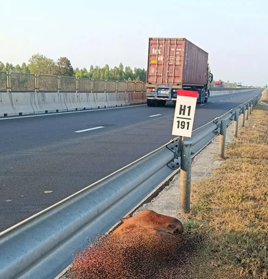 Đã có ít nhất hai vụ tai nạn xảy ra khi xe tông trúng đàn bò đang chạy ngang đường, trong đó có một xe tải va chạm mạnh vào dải phân cách.
