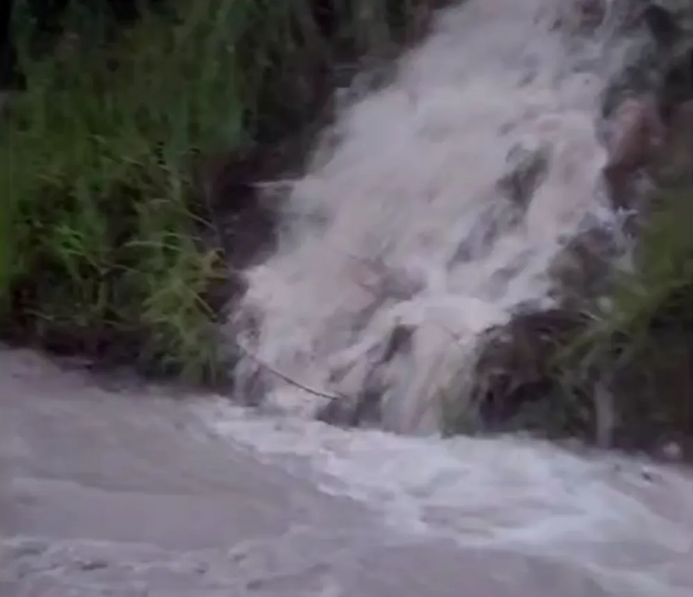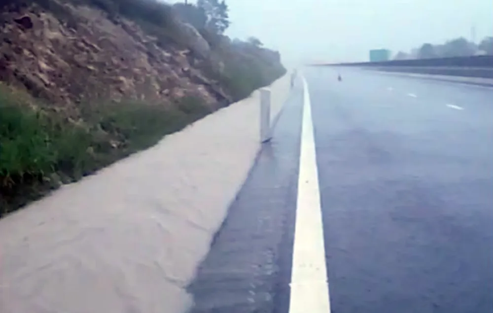 Nước chảy như suối ở rãnh thoát nước trên tuyến cao tốc.