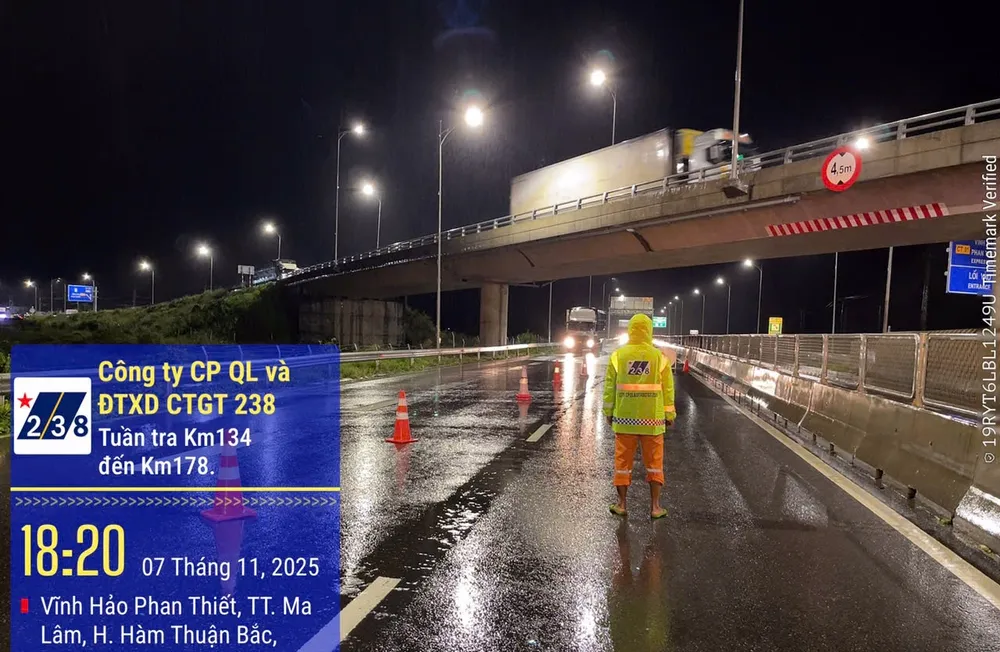 Sáng 8-11, ông Phạm Quốc Huy, Giám đốc điều hành cao tốc Vĩnh Hảo - Phan Thiết (Ban Quản lý dự án 7) xác nhận tối qua (7-11), do mưa lũ từ trên thượng nguồn đổ xuống, tuyến cao tốc Vĩnh Hảo - Phan Thiết ngập cục bộ. Tuy nhiên, chỉ trong thời gian ngắn, cao tốc đã được các lực lượng nỗ lực khắc phục, thông xe.