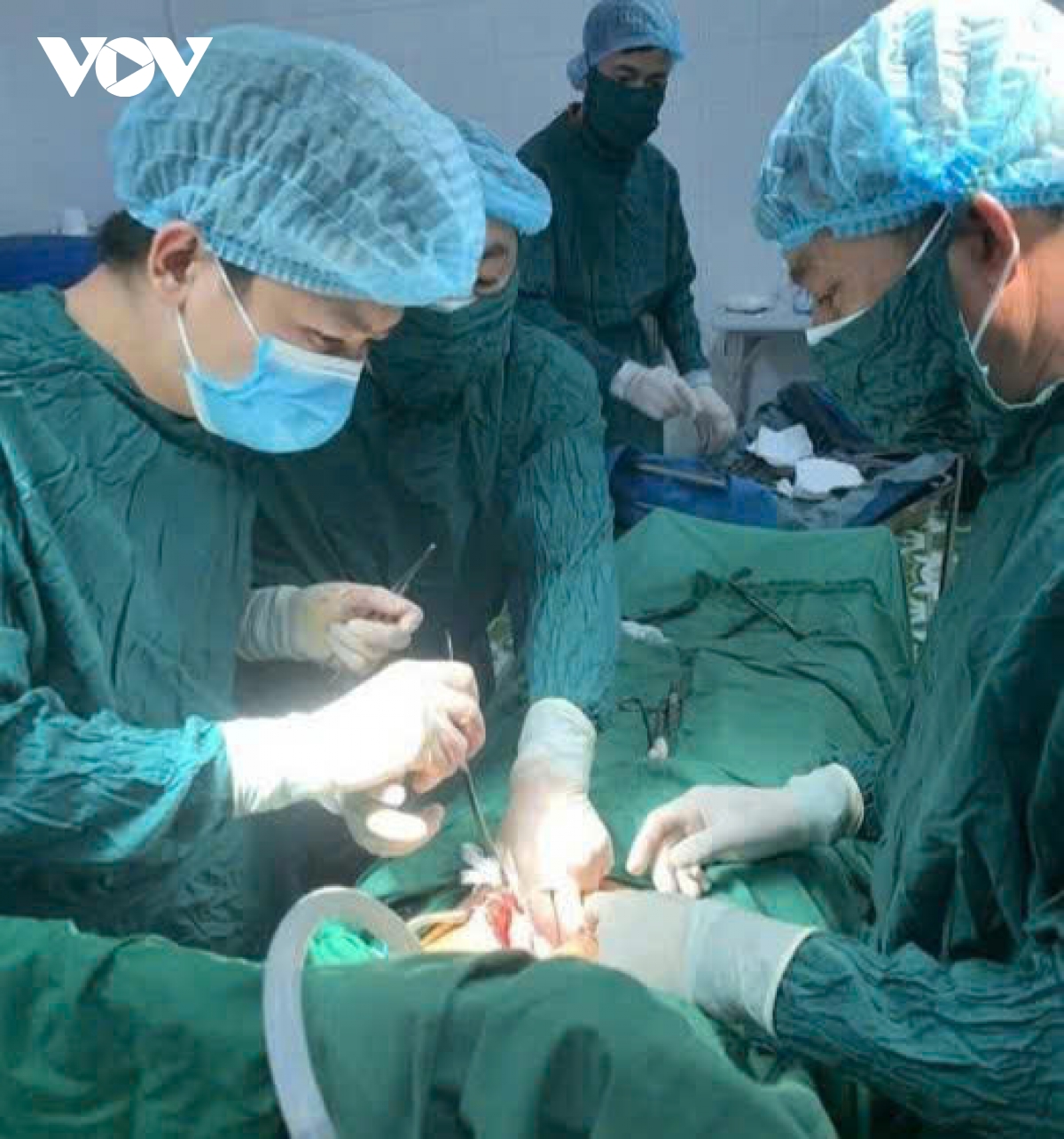 Các bác sĩ tiến hành phẫu thuật cho bệnh nhân (Ảnh: Trung tâm Y tế quân dân y Bạch Long Vĩ)