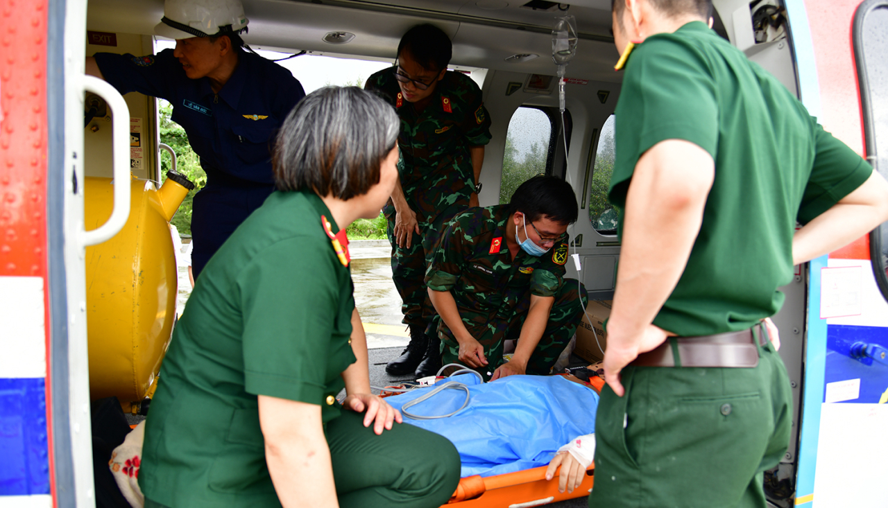 Thực hiện chỉ đạo của Cục Quân y, Bệnh viện Quân y 175 đã cử một kíp cấp cứu đường không, mang theo đầy đủ thuốc và trang thiết bị y tế, phối hợp với Bệnh xá đảo Sinh Tồn và các cơ quan, đơn vị liên quan tổ chức vận chuyển bệnh nhân về đất liền bằng máy bay quân sự.