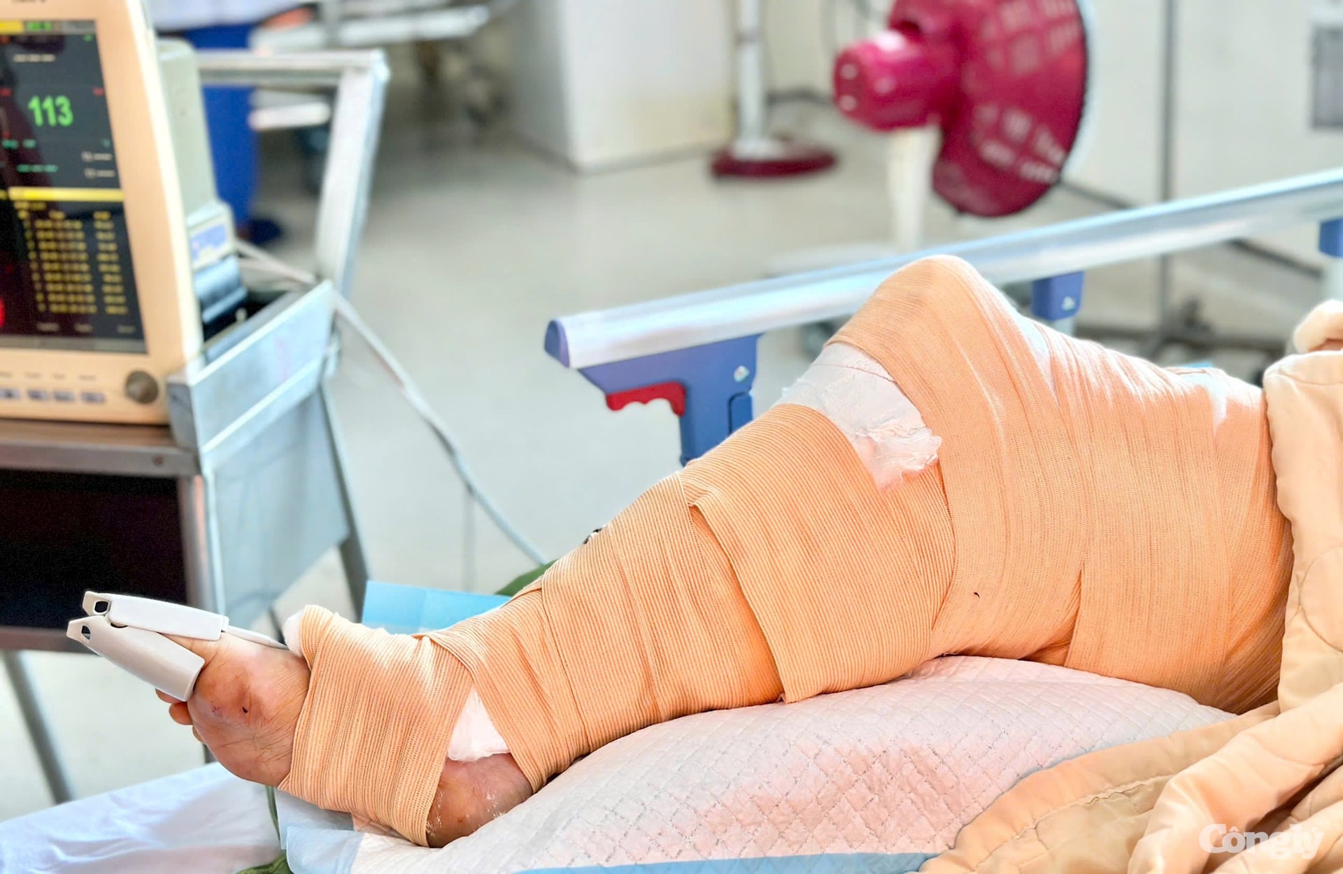 Cháu bé L.Đ.T.A. (SN 2017, phường Hội Phú, tỉnh Gia Lai) đã được cấp cứu kịp thời để giữ lại cẳng chân sau tai nạn.