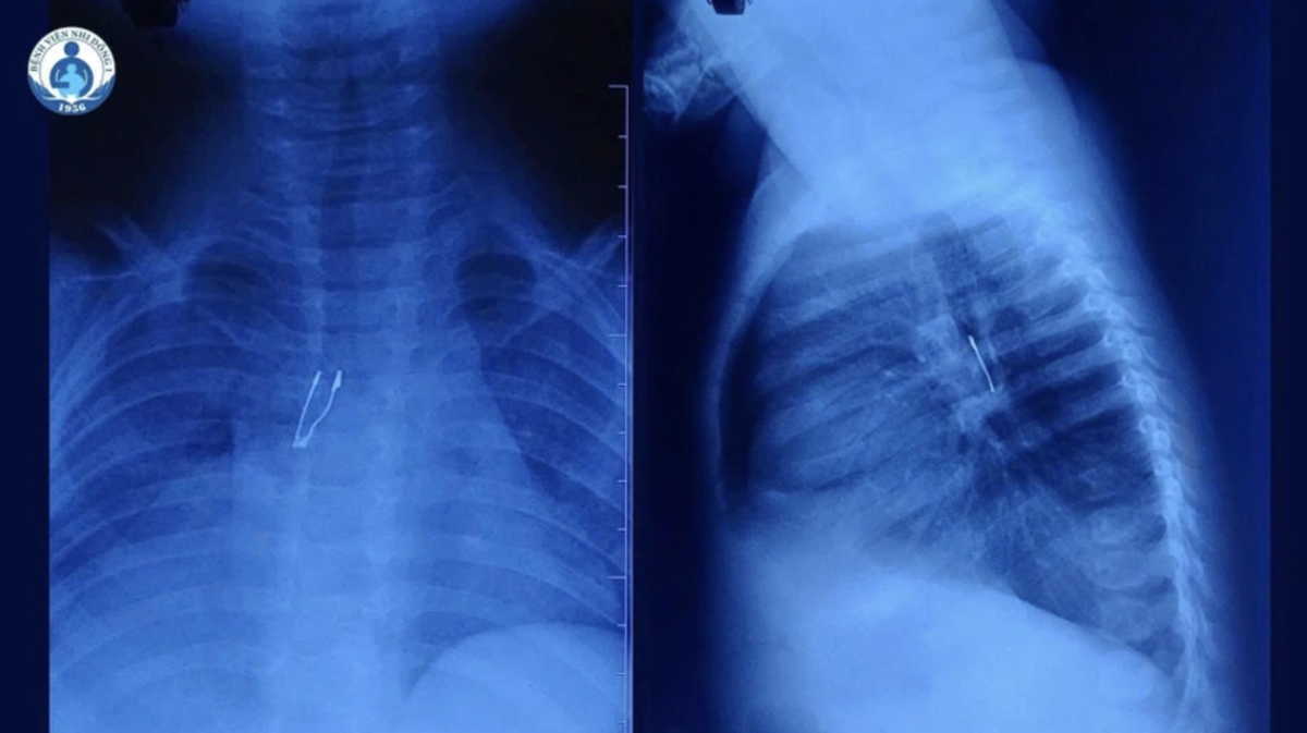 Trước đó, tại tuyến dưới, hình ảnh X-quang phát hiện dấu hiệu bất thường, nghi ngờ có dị vật đường thở nên bé được chuyển thẳng lên Bệnh viện Nhi đồng 1 để tiếp tục xử trí. Gia đình không xác định được thời điểm trẻ ngậm hoặc sặc dị vật, đồng thời cũng không rõ dị vật cụ thể là gì.