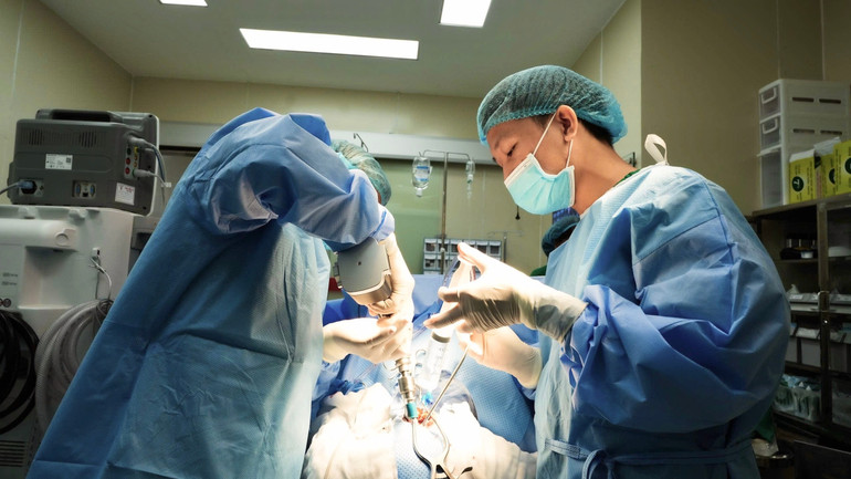 Ê-kíp bác sĩ tại Bệnh viện đa khoa quốc tế Minh Anh thực hiện ca phẫu thuật.
