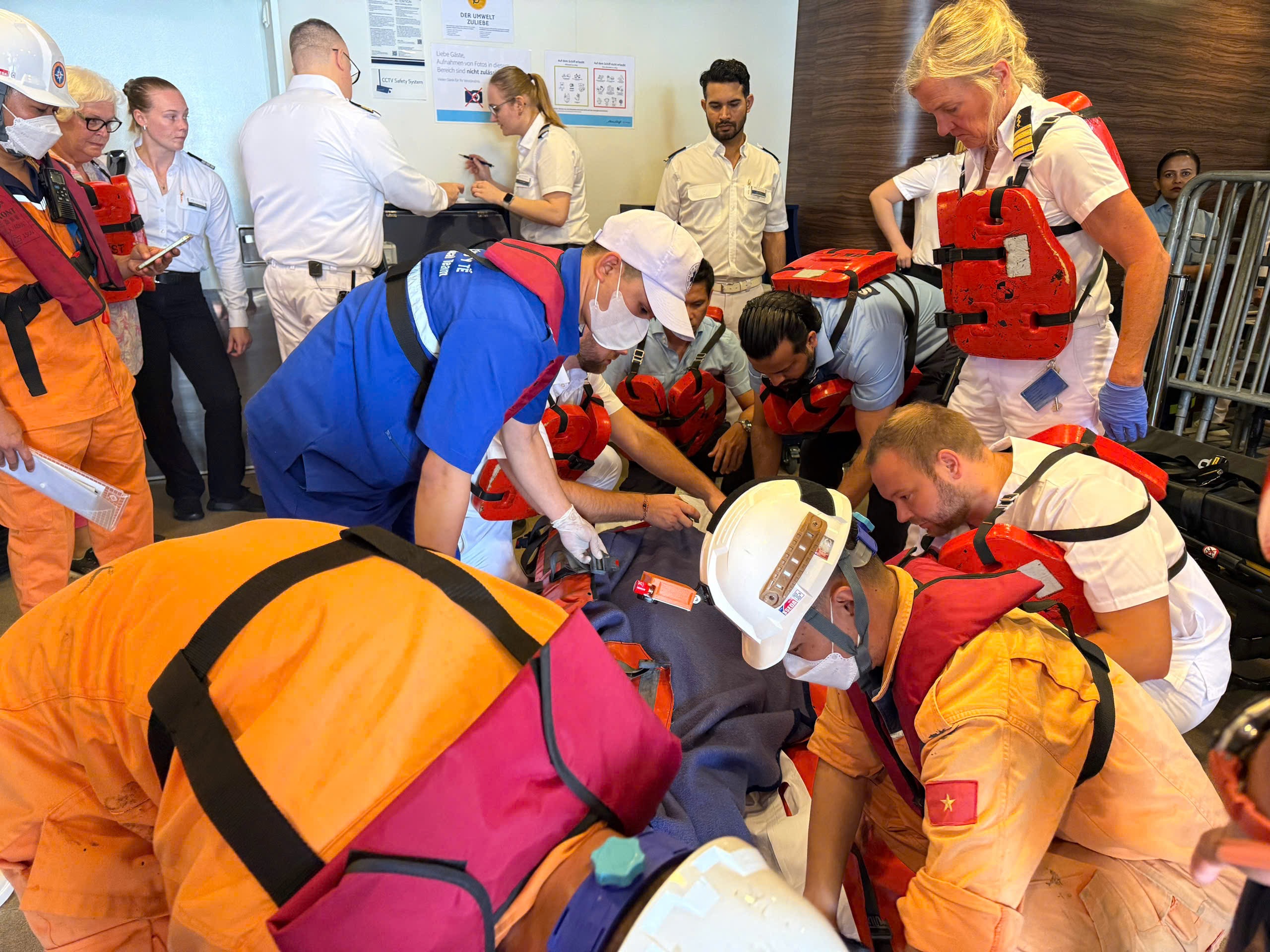 Khi tàu ở vị trí cách Đà Nẵng khoảng 215 hải lý, một hành khách trên tàu (sinh năm 1960, quốc tịch Đức) bị tai nạn trượt ngã dẫn đến bất tỉnh.