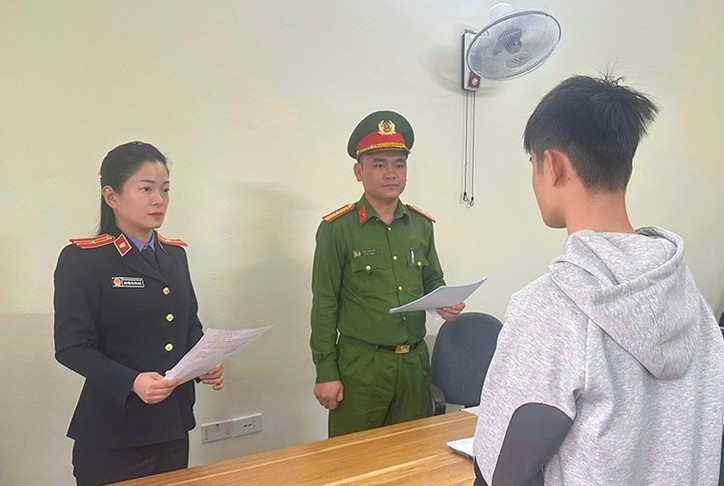 Cơ quan chức năng tống đạt quyết định khởi tố bị can đối với Nguyễn Đình H. Ảnh: Vân Anh