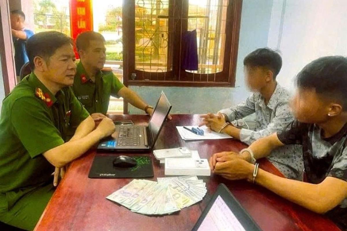 Hai đối tượng Trịnh Quốc T. và Hồ Đức H. tại cơ quan Công an.