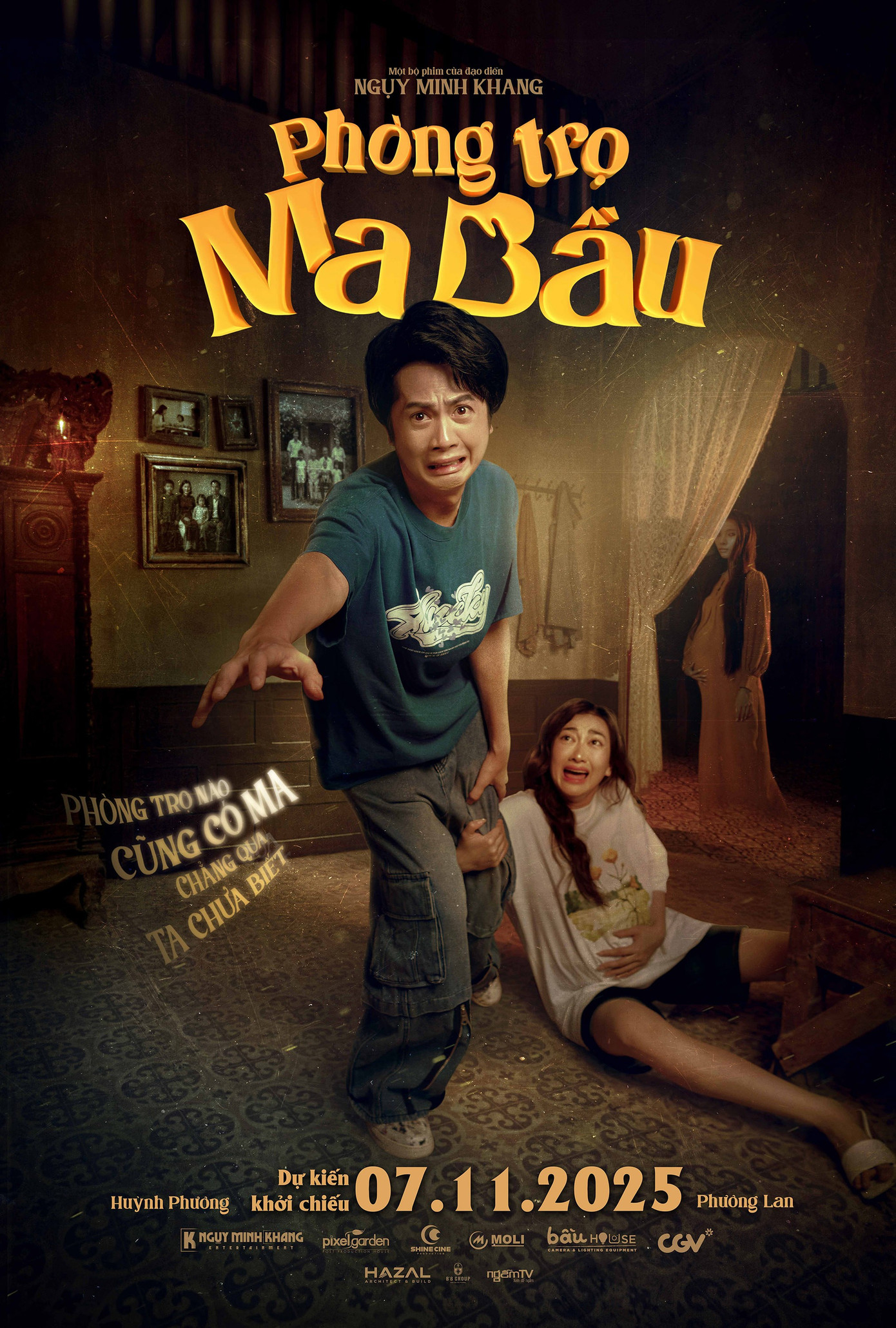 Bộ phim đồng thời đánh dấu vai chính điện ảnh đầu tiên của Huỳnh Phương, vốn được yêu thích nhờ lối diễn hài duyên dáng và tự nhiên. Trong poster vừa được hé lộ, Huỳnh Phương xuất hiện với gương mặt hoang mang, tay bị níu chặt bởi “bà bầu” Phương Lan – một khung hình vừa gây cười vừa hé mở tình huống tréo ngoe. Phía sau hai nhân vật, bóng dáng mờ ảo của một hồn ma đang mang bầu càng khiến khán giả thêm phần tò mò về câu chuyện phía sau.
