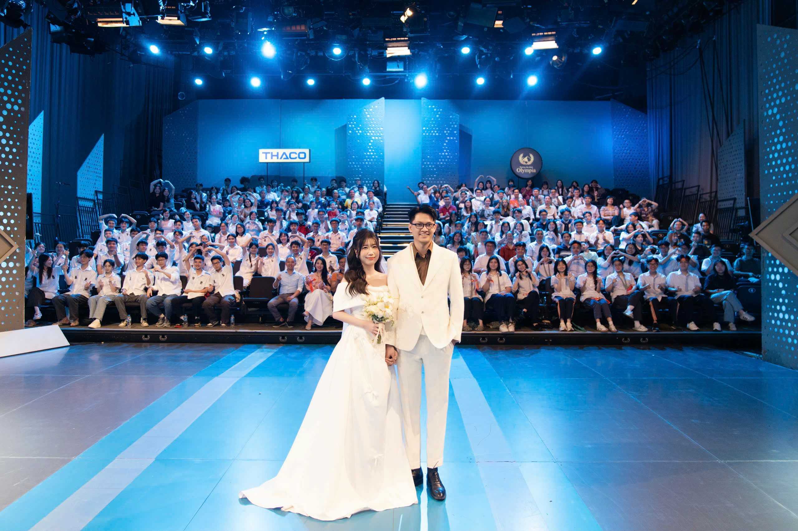 Sau hành trình gần một thập kỷ kể từ ngày chạm tay vào chiếc vòng nguyệt quế, hai "nhà leo núi" đã nên duyên vợ chồng. Họ thực hiện bộ ảnh cưới tại sân khấu Olympia - nơi khởi đầu của câu chuyện tình yêu.
