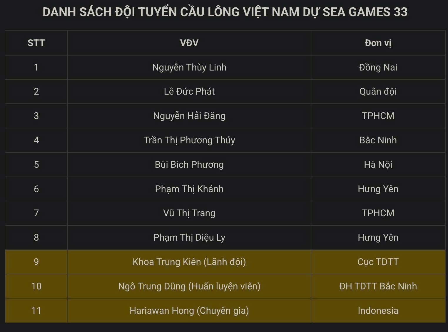 Ở môn cầu lông, danh sách 11 thành viên nhanh chóng trở thành tâm điểm tranh luận khi thiếu vắng cặp đôi số 1 nội dung đôi nam là Nguyễn Đình Hoàng và Trần Đình Mạnh của Lâm Đồng.