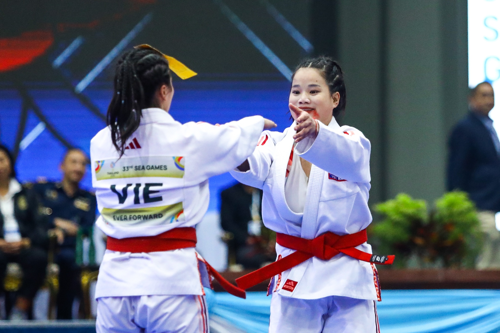 Sáng 10/12, Ju-jitsu “lĩnh ấn tiên phong” cho Đoàn Thể thao Việt Nam ở nội dung biểu diễn nữ với cặp đôi VĐV Phùng Thị Hồng Ngọc và Nguyễn Ngọc Bích. Đôi nữ của Việt Nam vượt qua vòng loại với 8 VĐV, tiến vào chung kết.