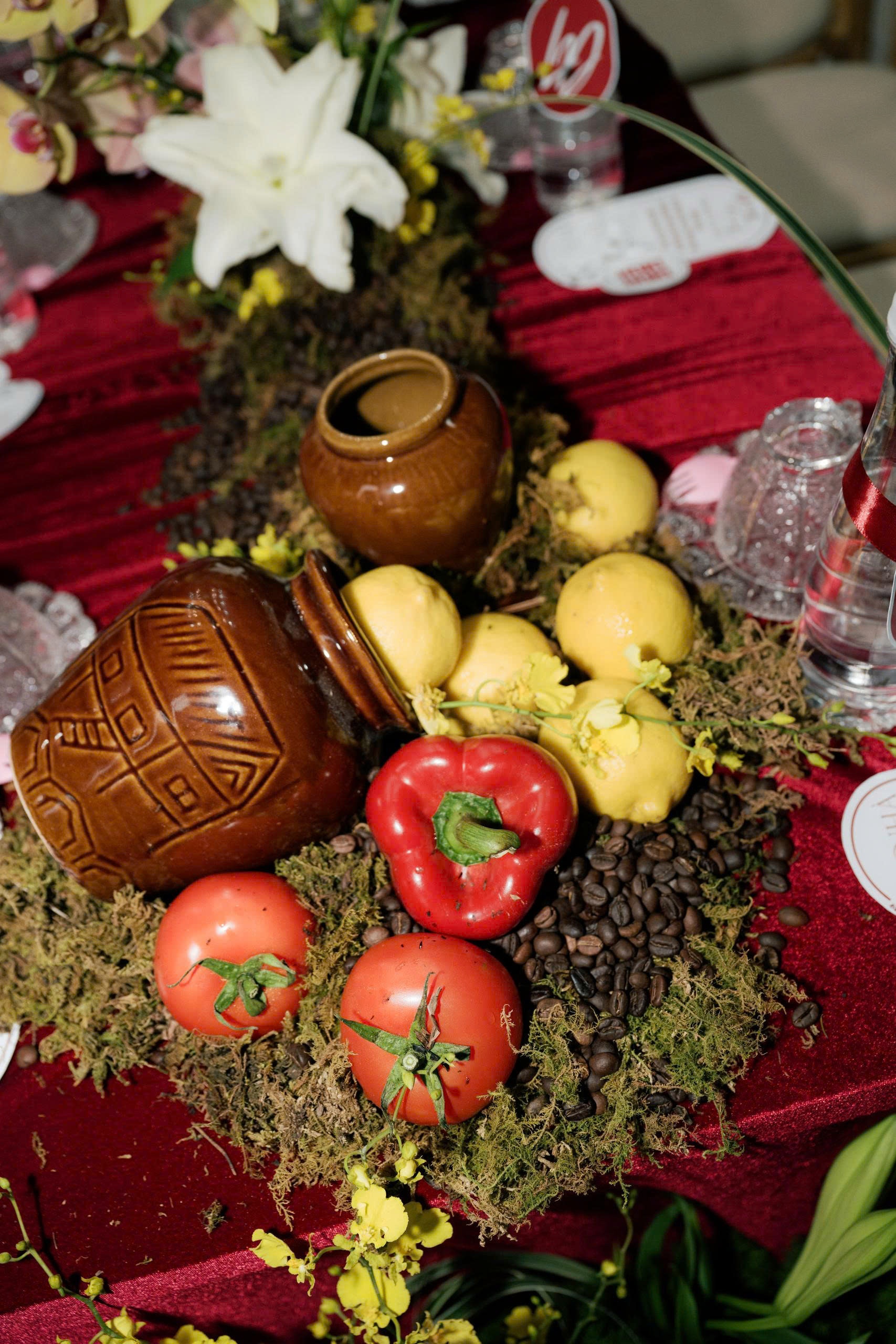 Cặp đôi trang trí lễ đính hôn ở TP.HCM bằng hoa ly, hạt cà phê và chum rượu gốm - những "biểu tượng" gắn liền với chuyện tình của họ.