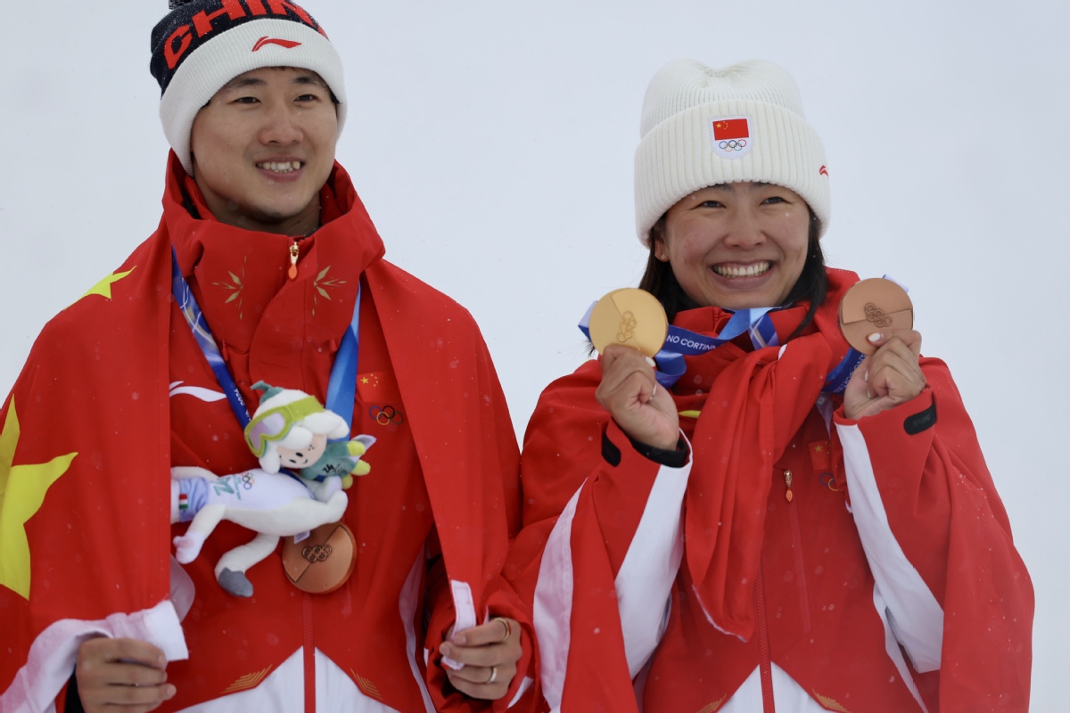 Vợ chồng Từ Mộng Đào (trái) và Vương Tâm Địch tỏa sáng rực rỡ trên bầu trời Milano-Cortina 2026