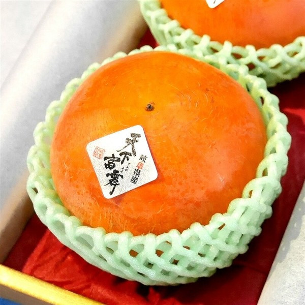 Giống hồng Neo Sweet được tỉnh Gifu phát triển từ năm 2015. Những quả hồng New Sweet đạt tiêu chuẩn nhất định sẽ được gắn nhãn mác thương hiệu Tenka Fubu. Ảnh: Chunichi