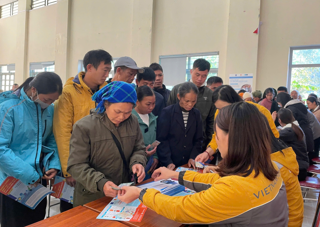 Người dân xã Đức Long nhận hỗ trợ cải thiện nước sạch và vệ sinh.