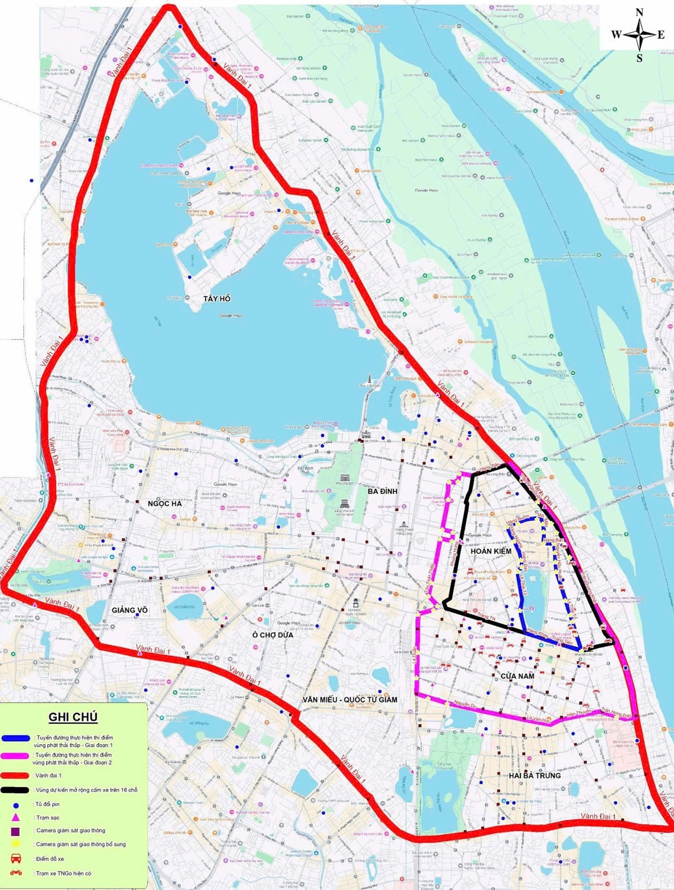 Giai đoạn 2 (01/1/2027 - 31/12/2027): Mở rộng sang phường Cửa Nam và thêm 14 tuyến phố lân cận như Nguyễn Du, Trần Hưng Đạo, Điện Biên Phủ, Hàng Bông...