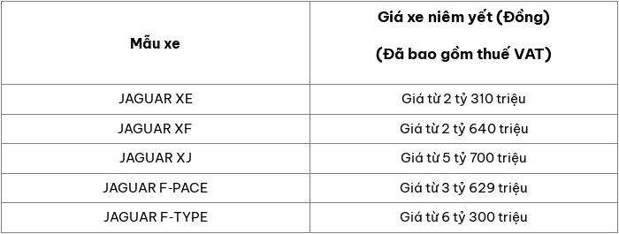 Cập nhật bảng giá ô tô Jaguar mới nhất tháng 12/2025
