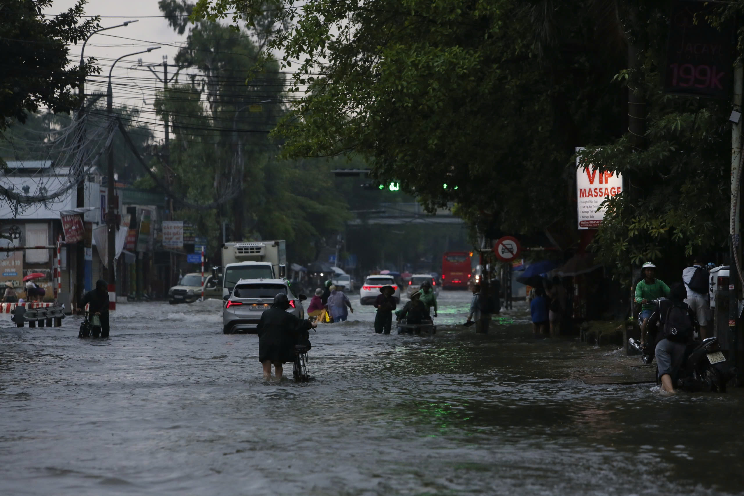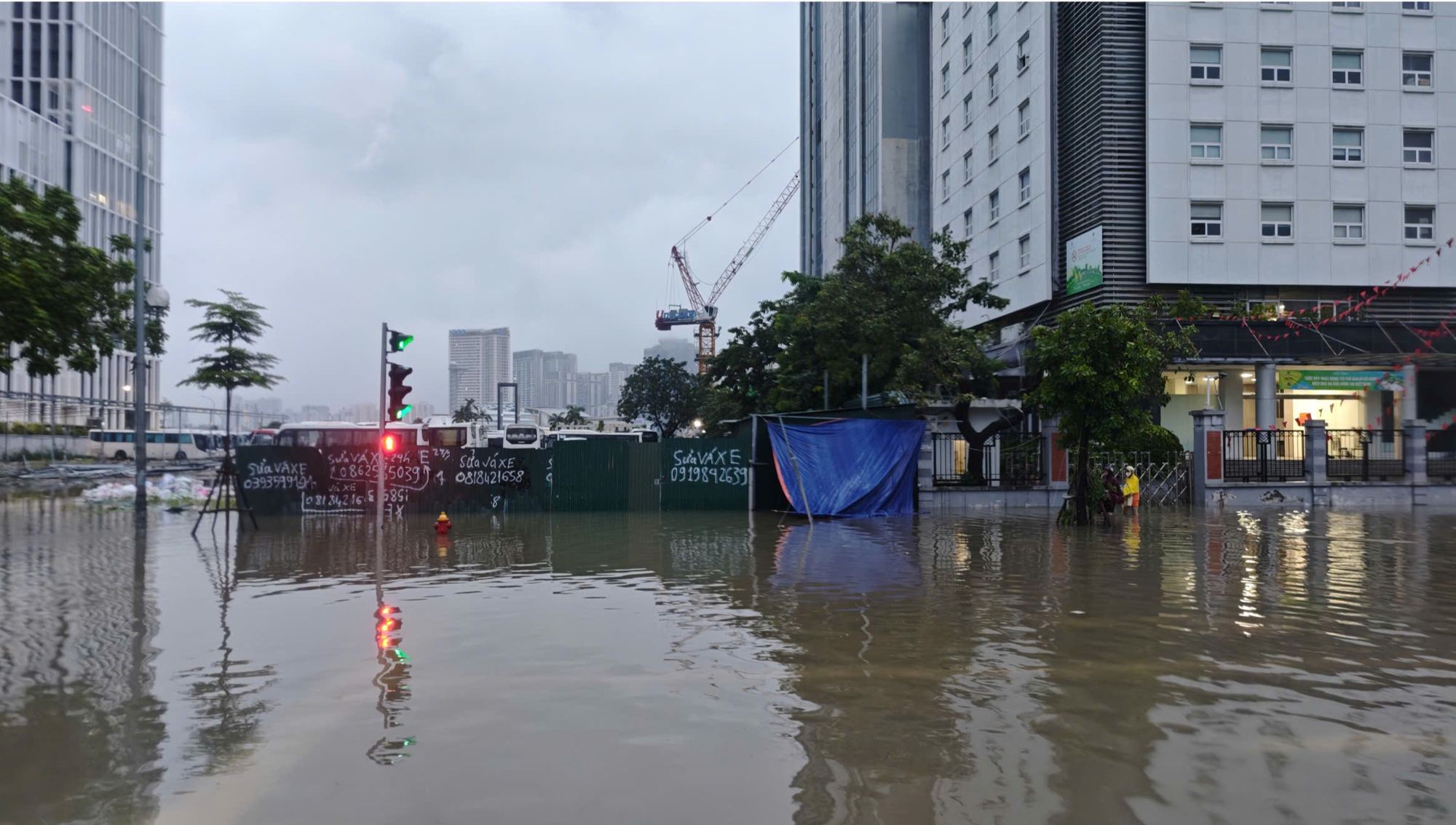 - Đường Lương Thế Vinh vẫn ngập, có chỗ sâu nhất khoảng 30cm.