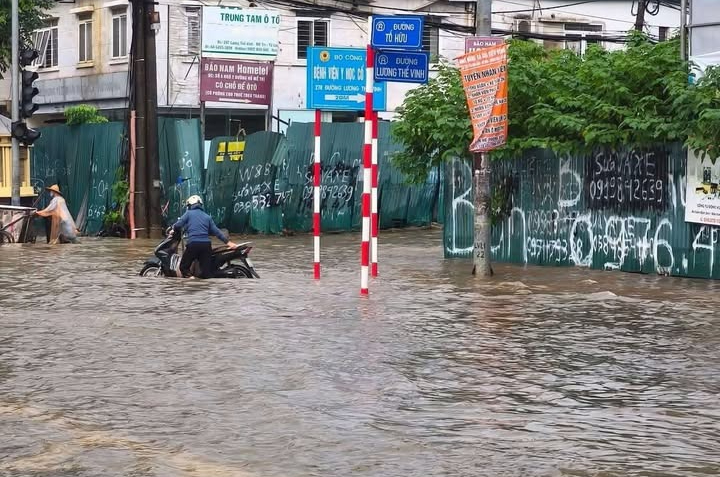 - Tố Hữu - Lương Thế Vinh còn ngập, các phương tiện có thể đi sát dải phân cách giữa.