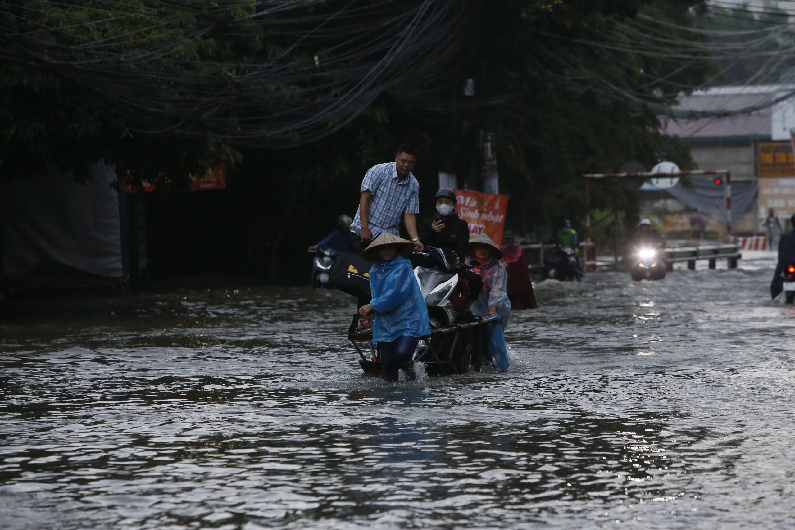 - Khu đô thị An Khánh nhiều đoạn ngập sâu.
