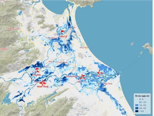 Bản đồ nguy cơ ngập lụt hạ lưu sông Vu Gia - Thu Bồn (thành phố Đà Nẵng).