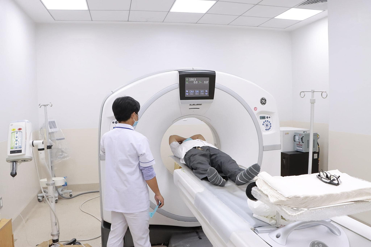Bác sĩ Bệnh viện Ung bướu TPHCM chuẩn bị chụp CT cho người bệnh