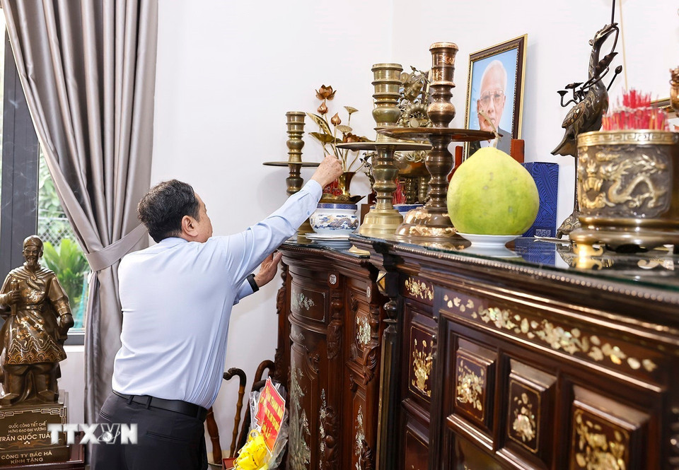 Chủ tịch Quốc hội Trần Thanh Mẫn dâng hương tưởng nhớ đồng chí Lê Phước Thọ. (Ảnh: Doãn Tấn/TTXVN)