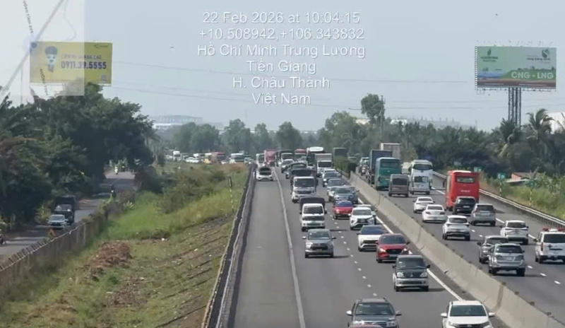 Tại khu vực phía Nam, tuyến cao tốc TP. Hồ Chí Minh - Trung Lương - Mỹ Thuận - Cần Thơ ghi nhận mật độ phương tiện tăng mạnh theo từng hướng. Ở chiều từ miền Tây về TP. Hồ Chí Minh, đoạn từ Trung Lương đến nút giao Tân An lượng xe đông hơn, phương tiện di chuyển chậm nhưng vẫn đảm bảo an toàn. Chiều ngược lại, từ TP. Hồ Chí Minh đi các tỉnh miền Tây, mật độ khá đông song xe vẫn lưu thông ổn định.