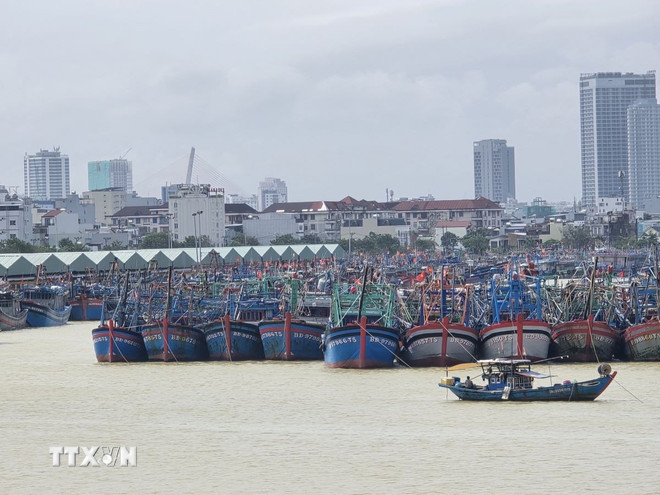 Tàu thuyền neo đậu tại âu thuyền Thọ Quang (phường Sơn Trà, thành phố Đà Nẵng) để tránh trú bão. (Ảnh: Khoa Chương/TTXVN)