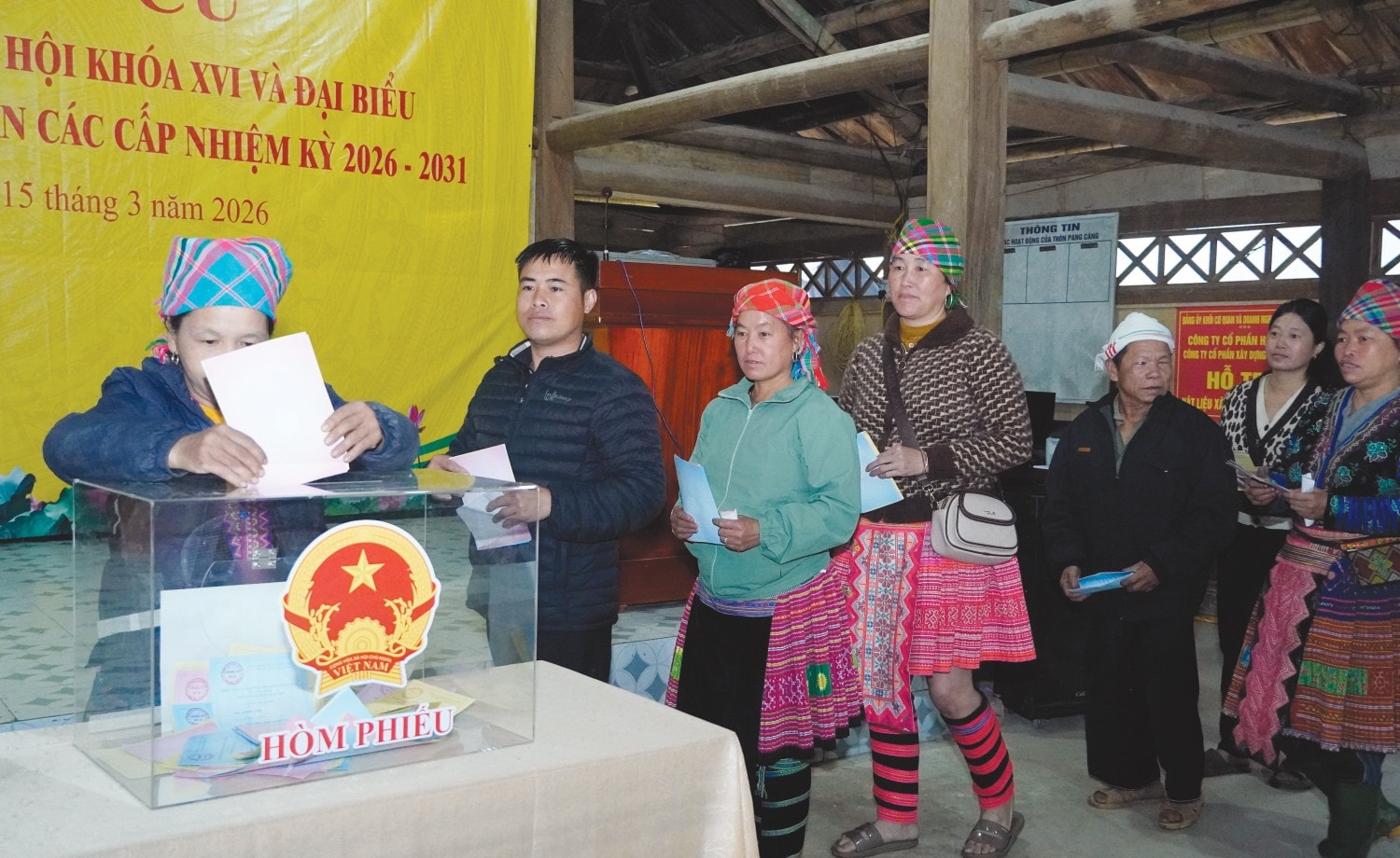 Cử tri thôn Pang Cáng, xã Văn Chấn, Lào Cai tham gia ngày hội non sông