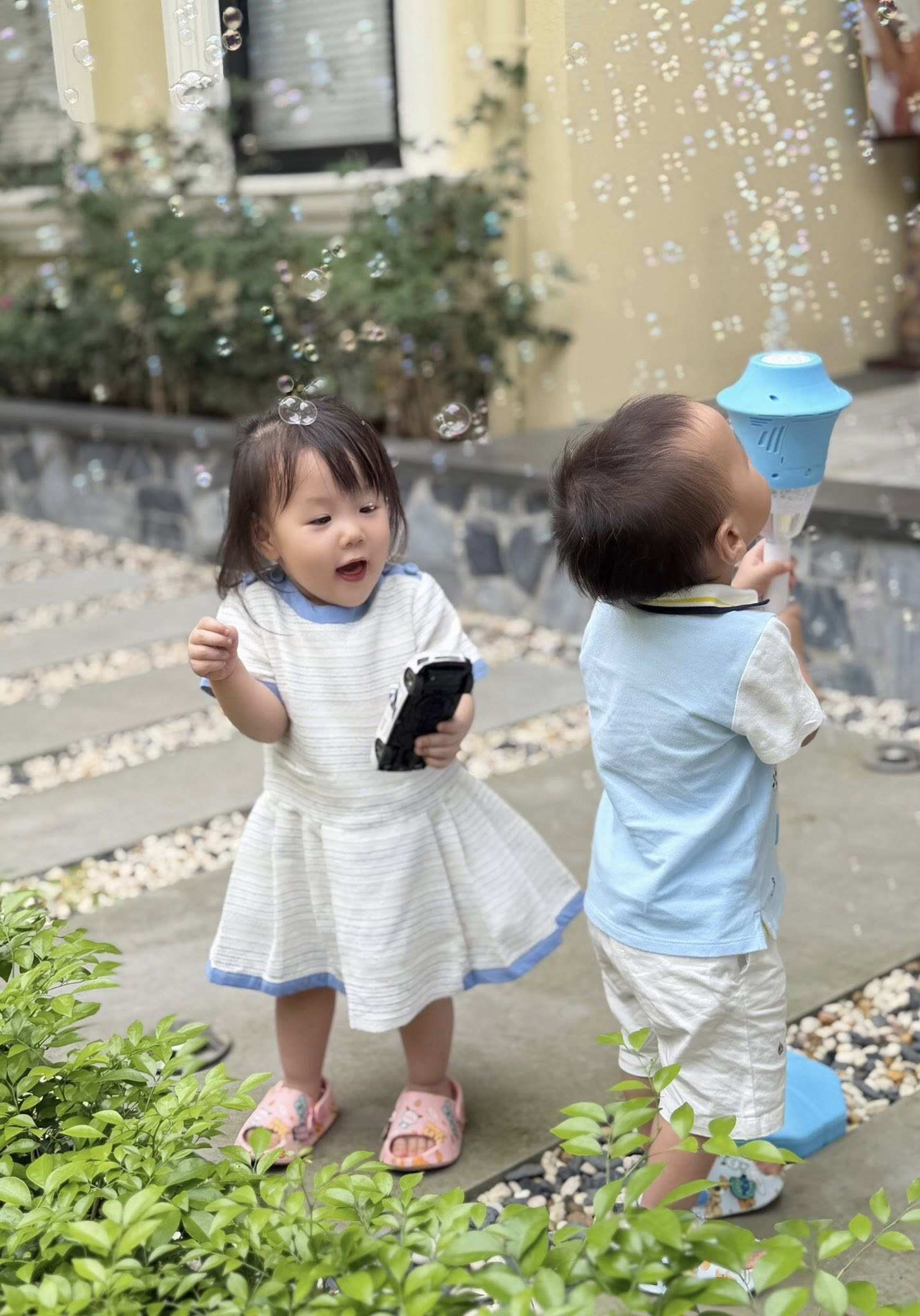 Trong loạt ảnh mới nhất, Phương Oanh tiết lộ Jimmy luôn thể hiện bản lĩnh của một người anh dù còn nhỏ tuổi. Cụ thể, khi hai anh em chơi đùa cùng cột bong bóng, Jimmy đã chủ động đứng giữ cột để em gái Jenny yên tâm vui chơi. Nữ diễn viên chia sẻ đầy tự hào: "Mặc dù cái cột bong bóng không thể đổ được nhưng người anh vẫn cương quyết đứng giữ cho bà em tha hồ hưởng".