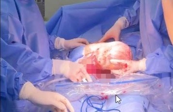 "Trong các ca sinh thường, túi ối sẽ tự vỡ để nước ối bôi trơn đường sinh, giúp em bé ra ngoài dễ dàng hơn. Ở ca sinh mổ, quá trình thao tác dao mổ thường khiến túi ối rách. Tuy nhiên, đôi khi có những trường hợp hy hữu, túi ối vẫn còn nguyên khi bé ra đời", bác sĩ Trung chia sẻ.
